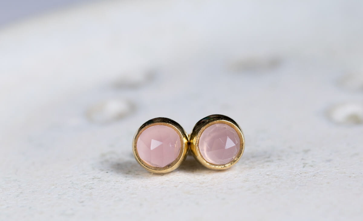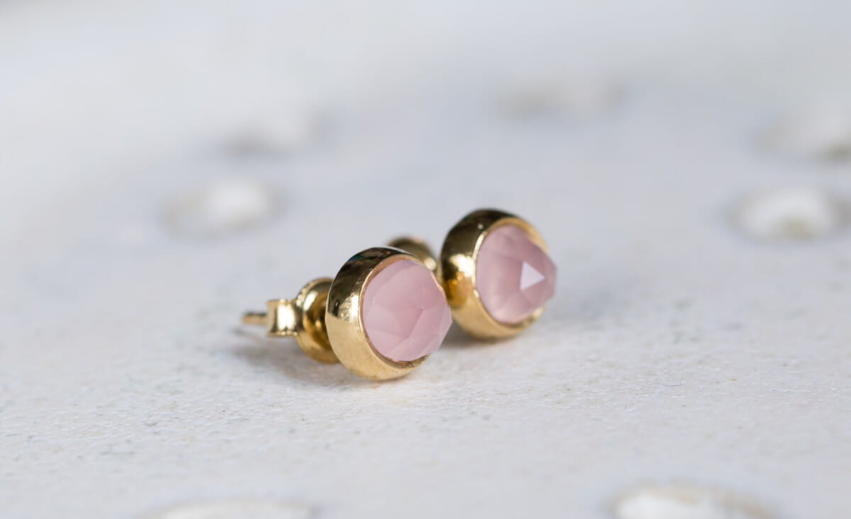 Agat różany fasetowany 6 mm w oprawie srebrnej p.925 pozłacanej 24 k złotem.