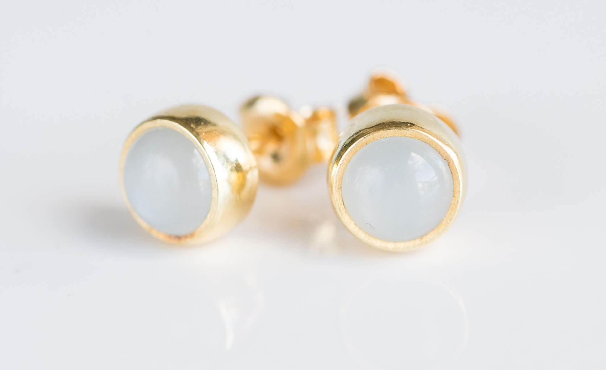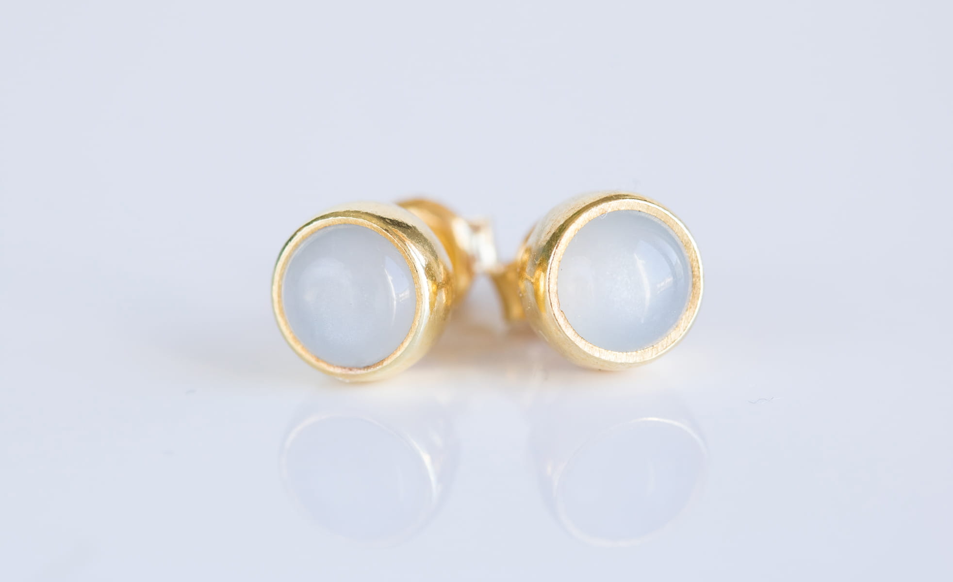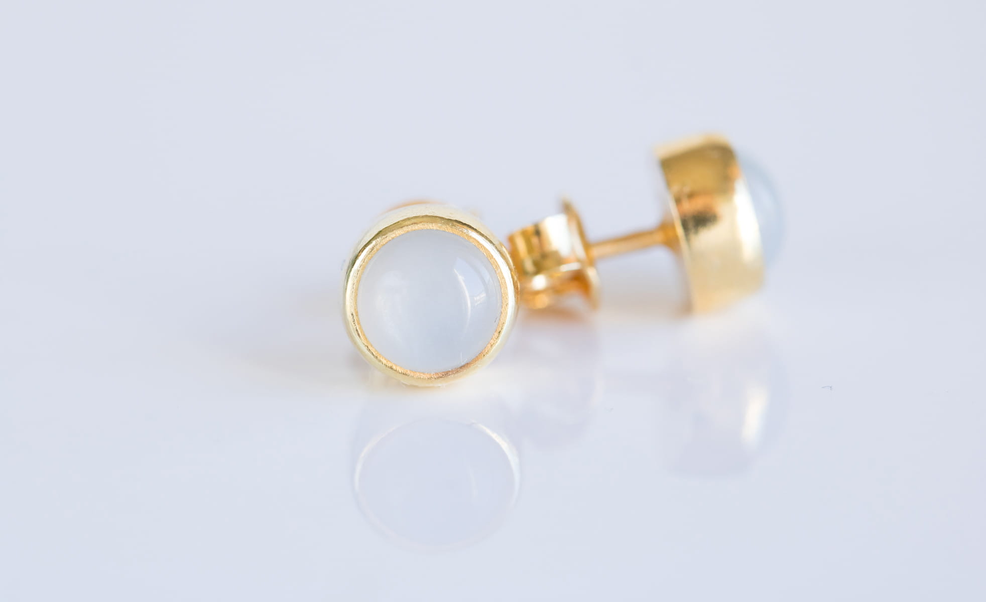 Sztyfty z mlecznym kamieniem księżycowym (moonstone) 6mm w srebrnej oprawie p.925, pozłacane 24k złotem.