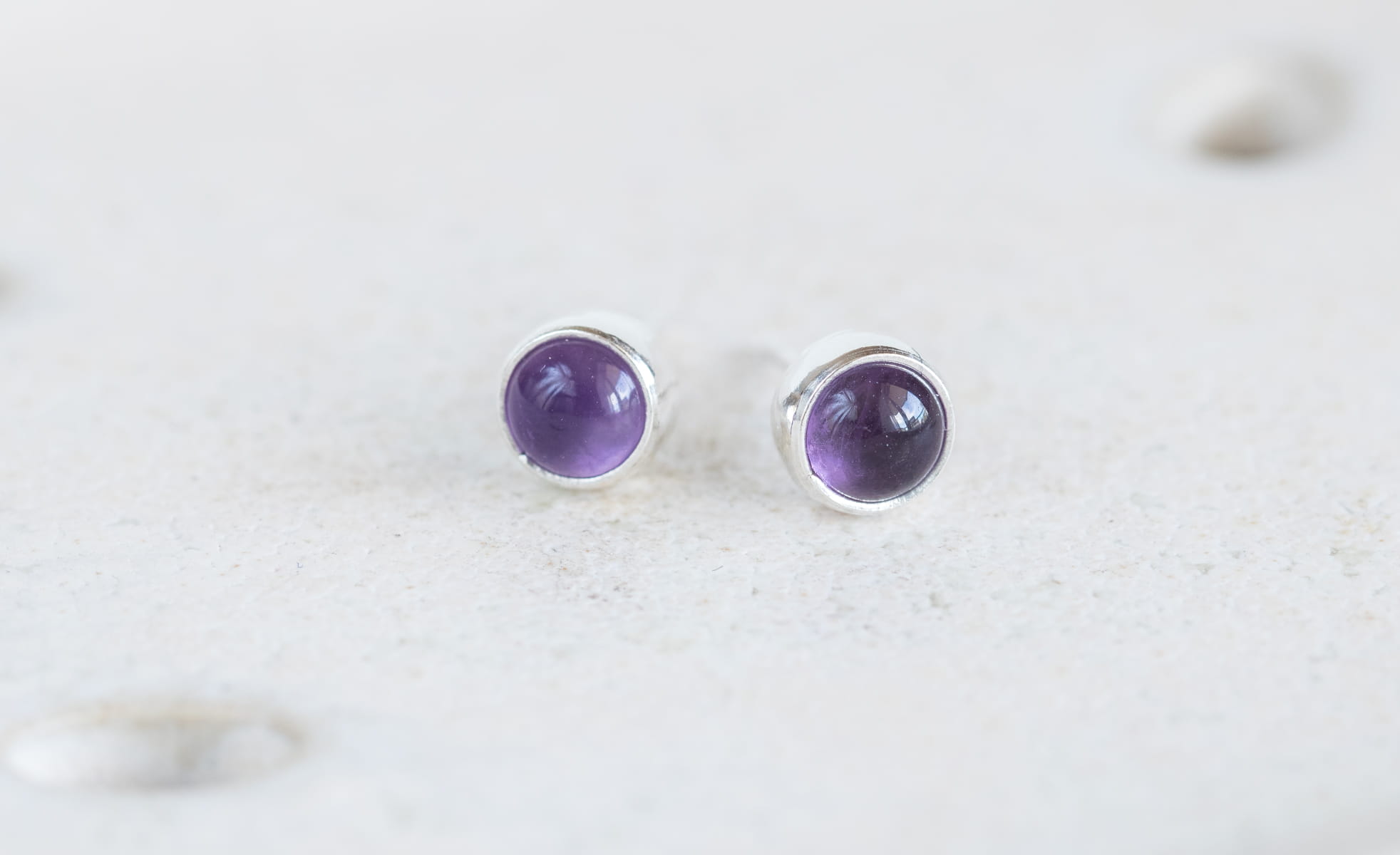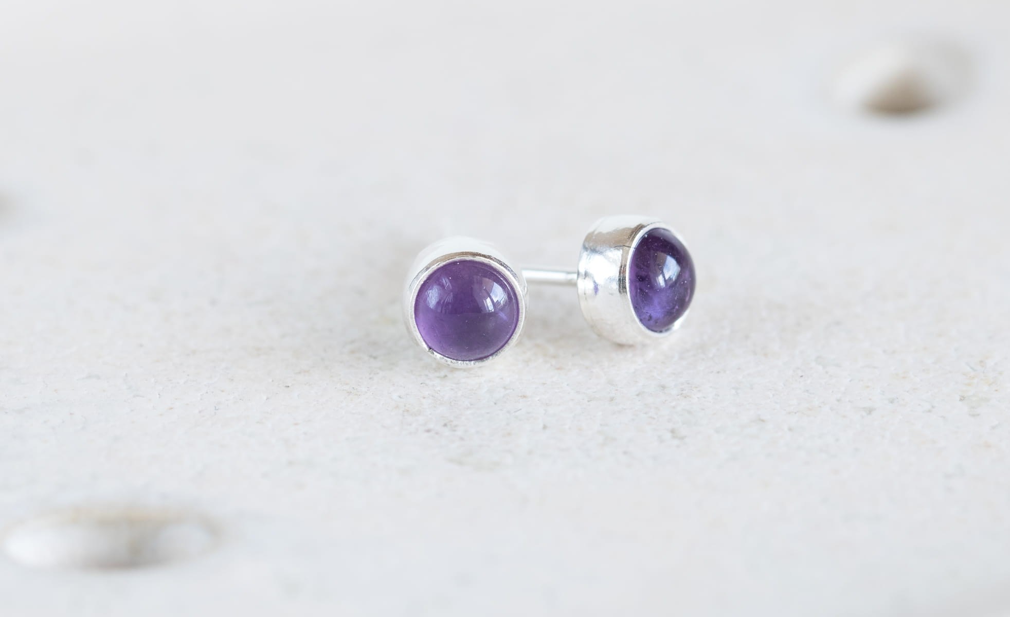 Sztyfty z fioletowymi ametystami 5 mm, srebro p.925