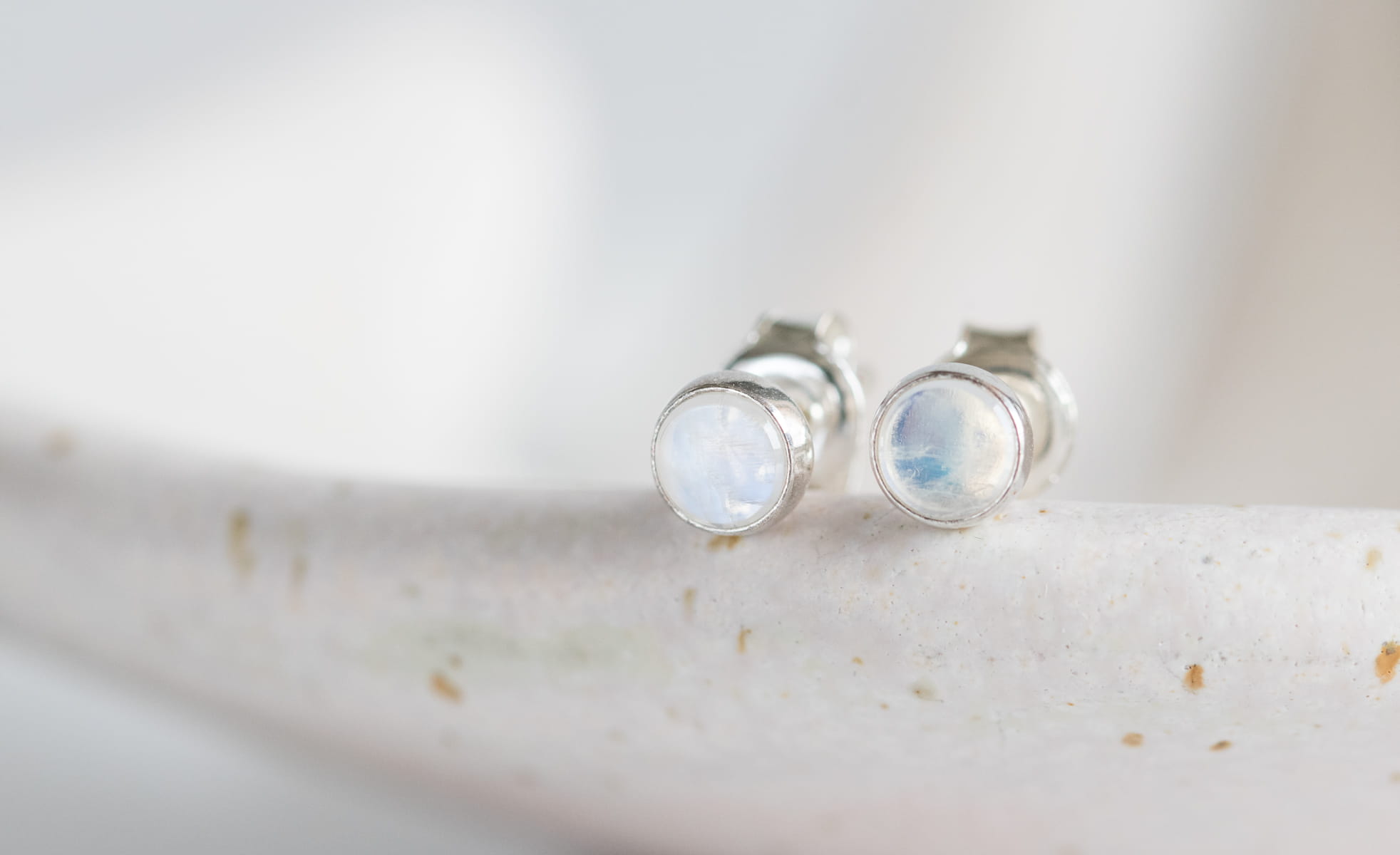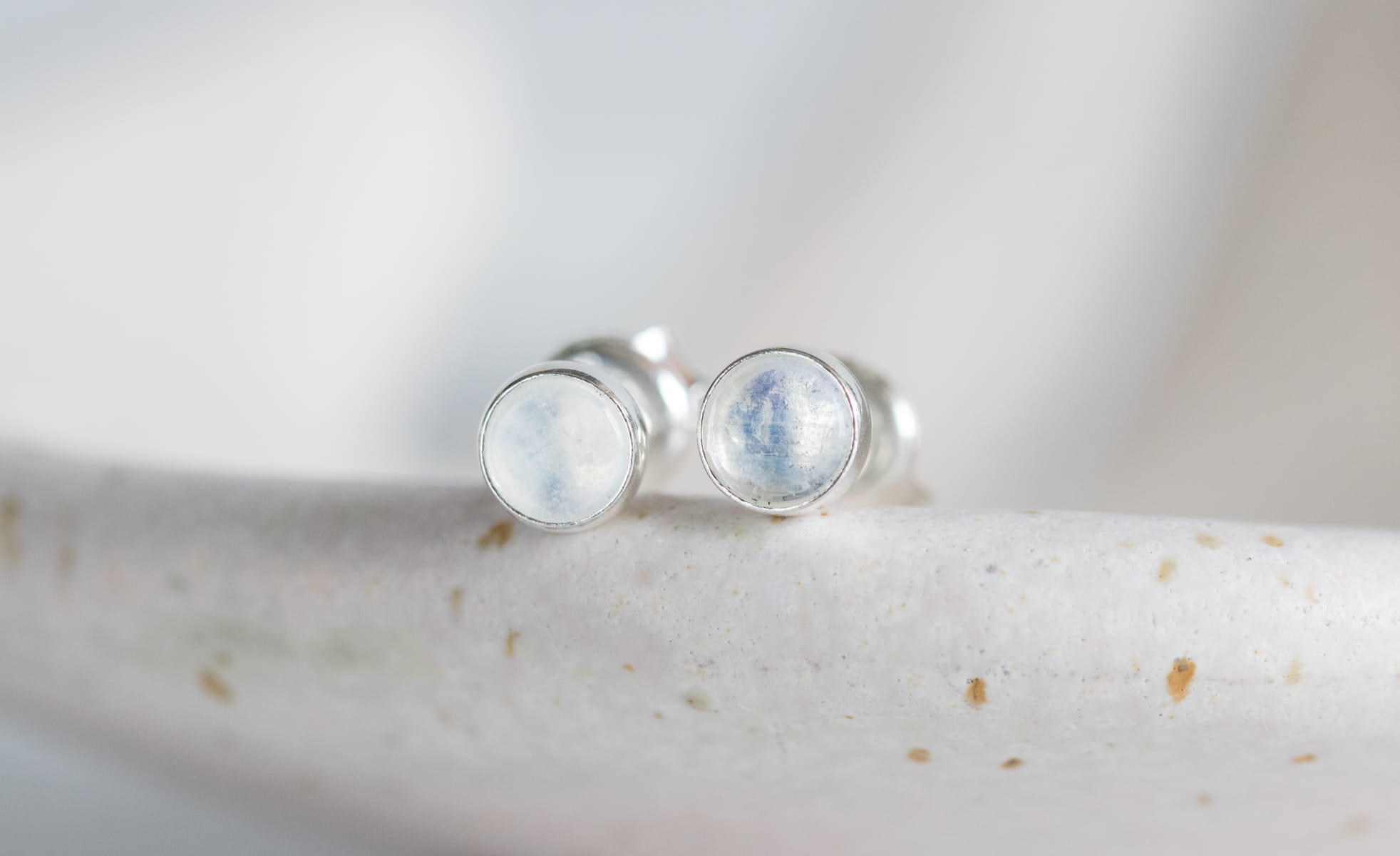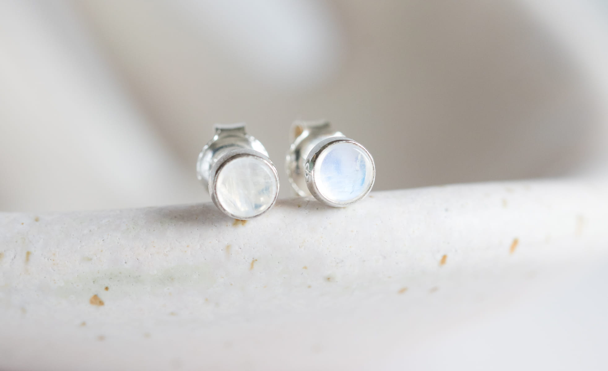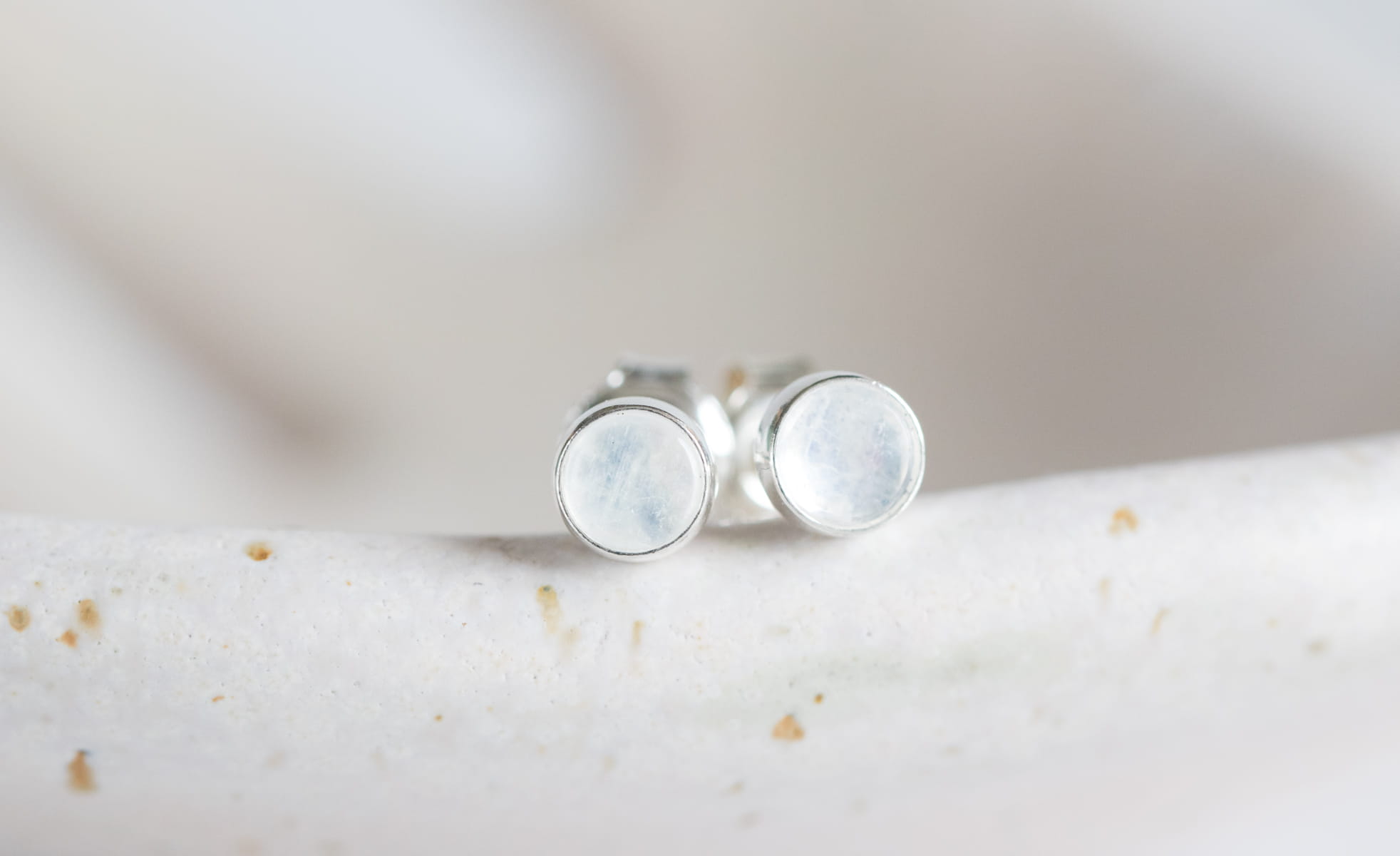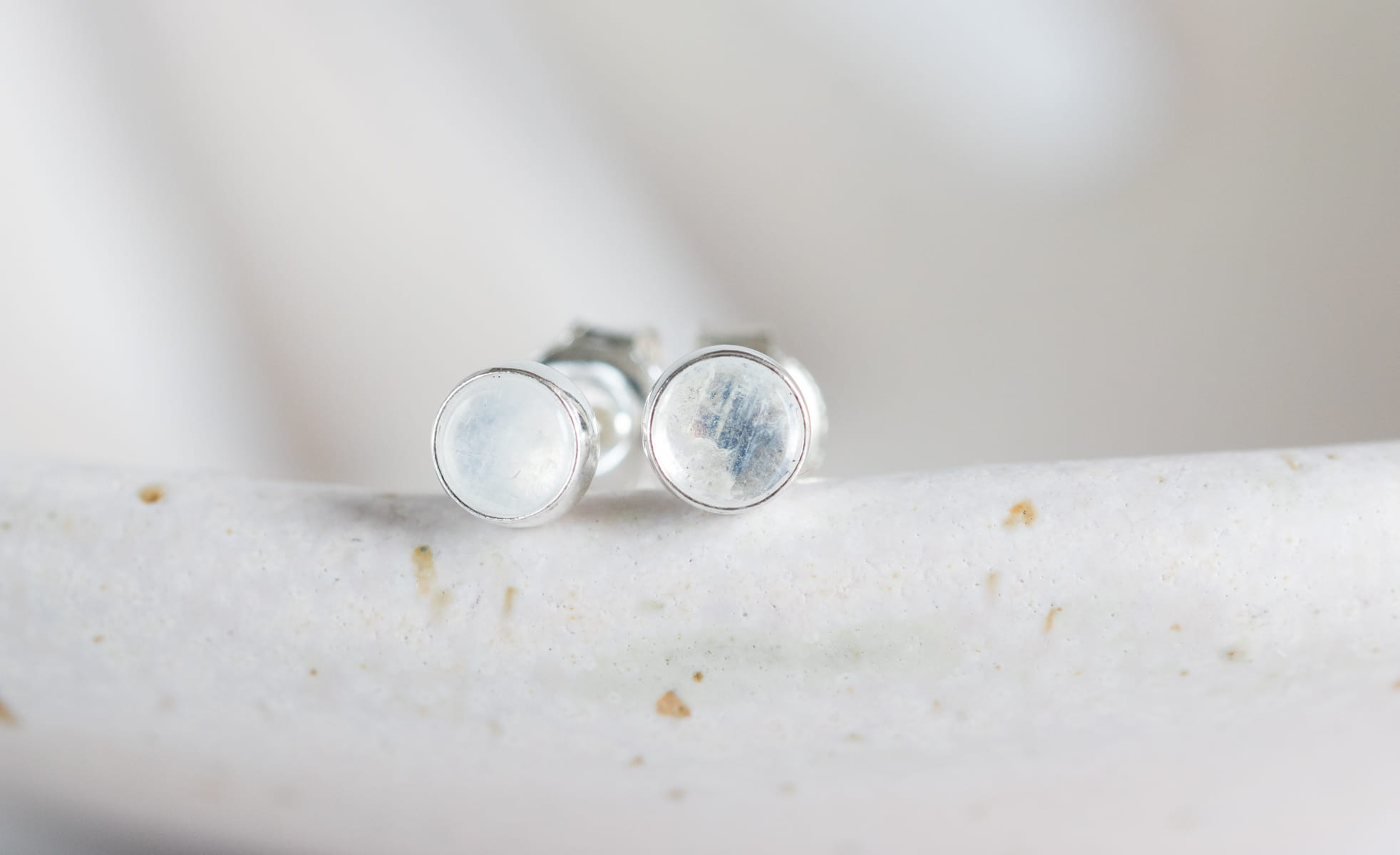 Sztyfty z okrągłym kamieniem księżycowym 4mm w srebrnej oprawie p.925.