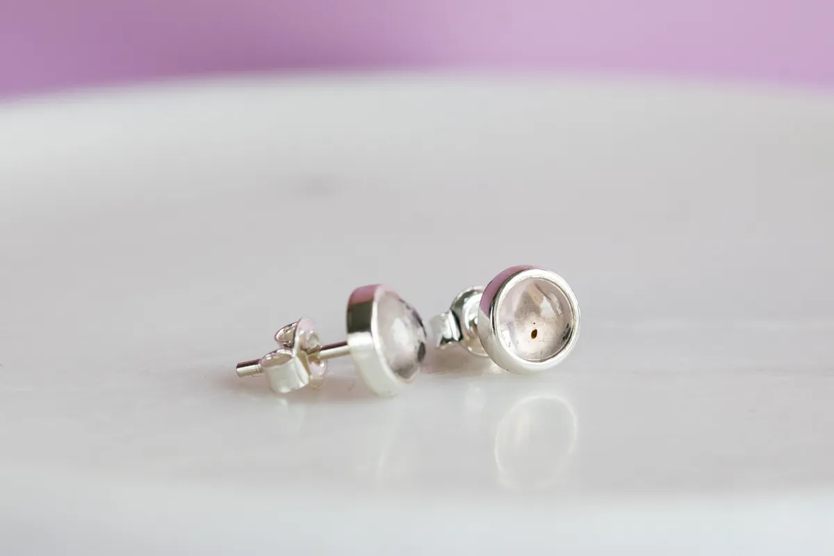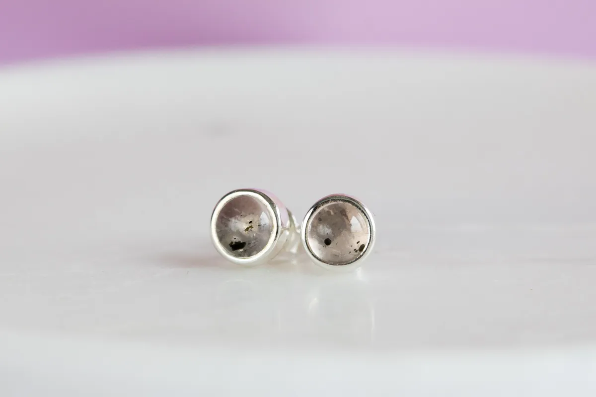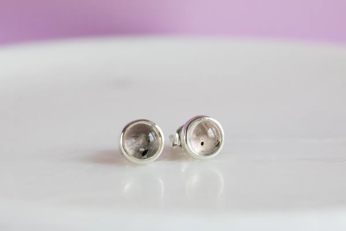 Kolczyki: srebro p.925, kwarc różowy z inkluzjami 6mm – sztyfty