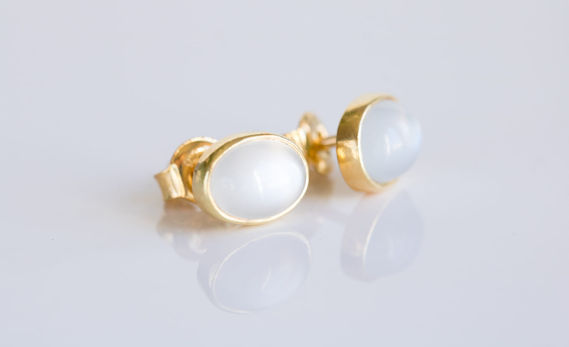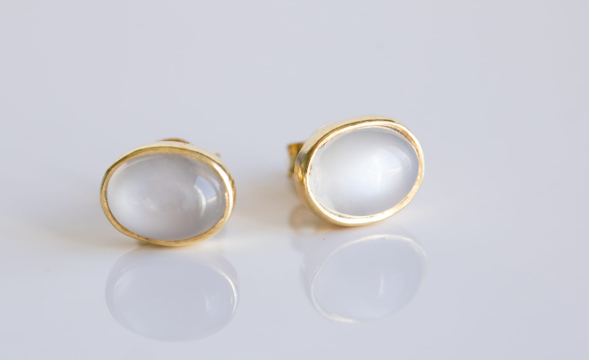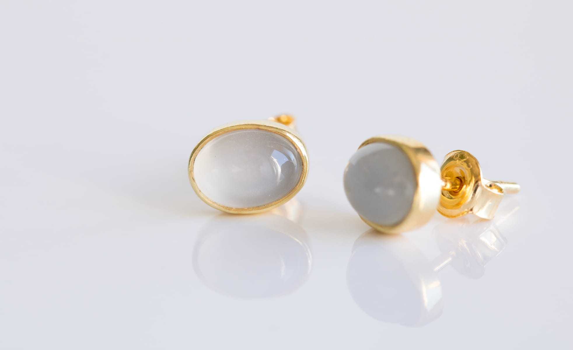 Srebrne sztyfty z mlecznym kamieniem księżycowym 6x8 mm, pozłacane 24 k złotem.