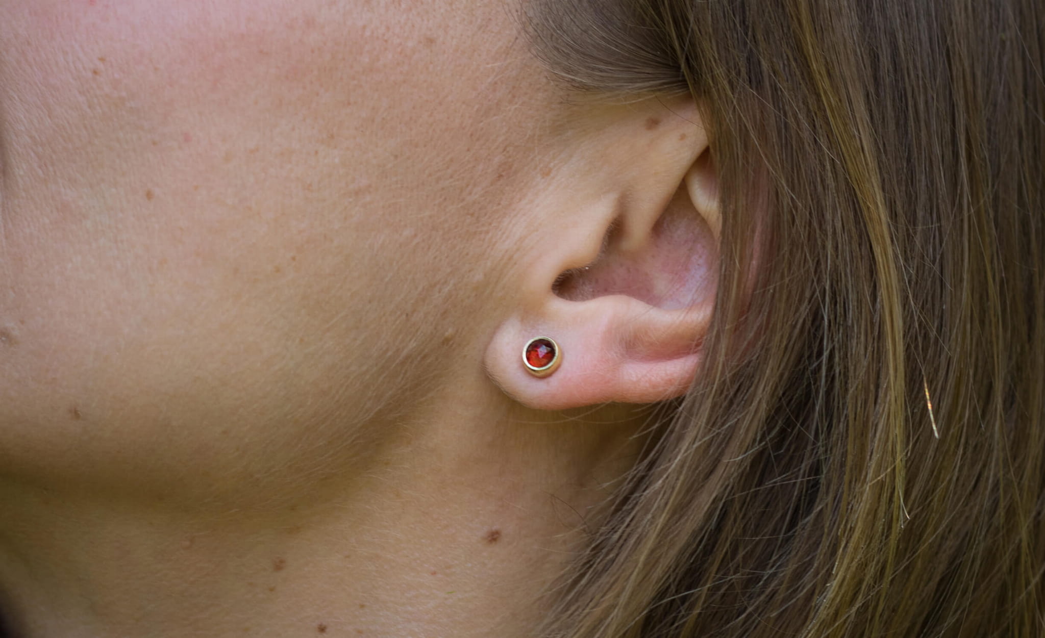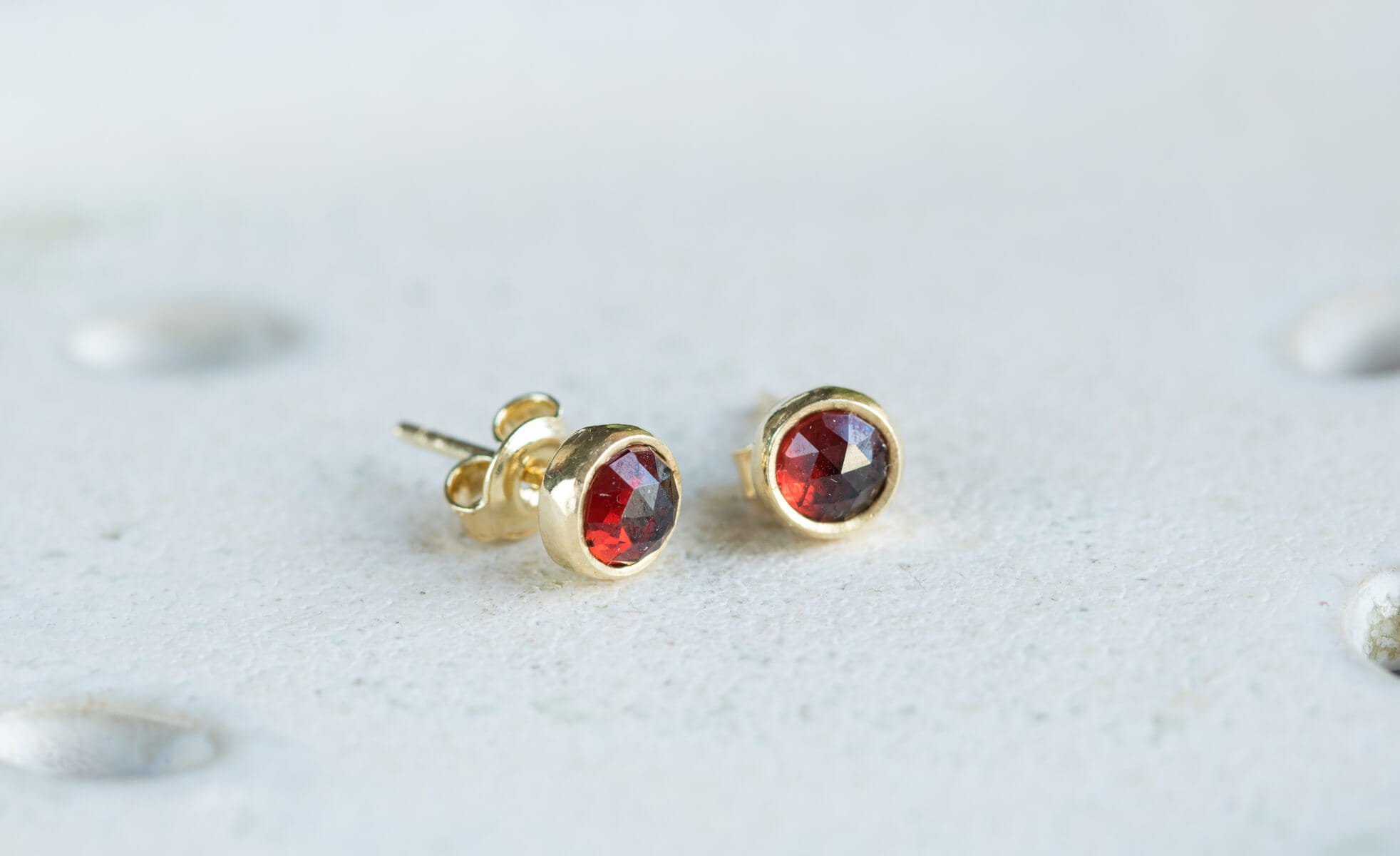 Kolczyki: srebro p.925, granat fasetowany 5mm – sztyfty pozłacane 24k złotem.
