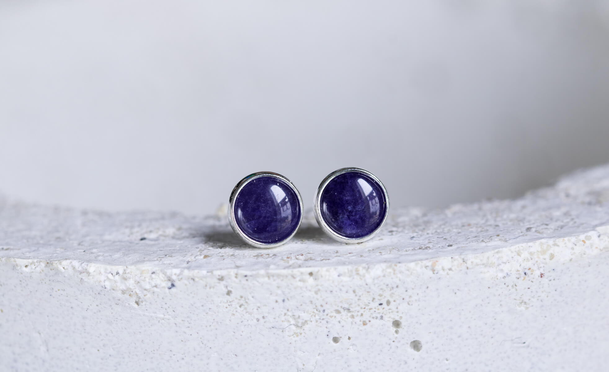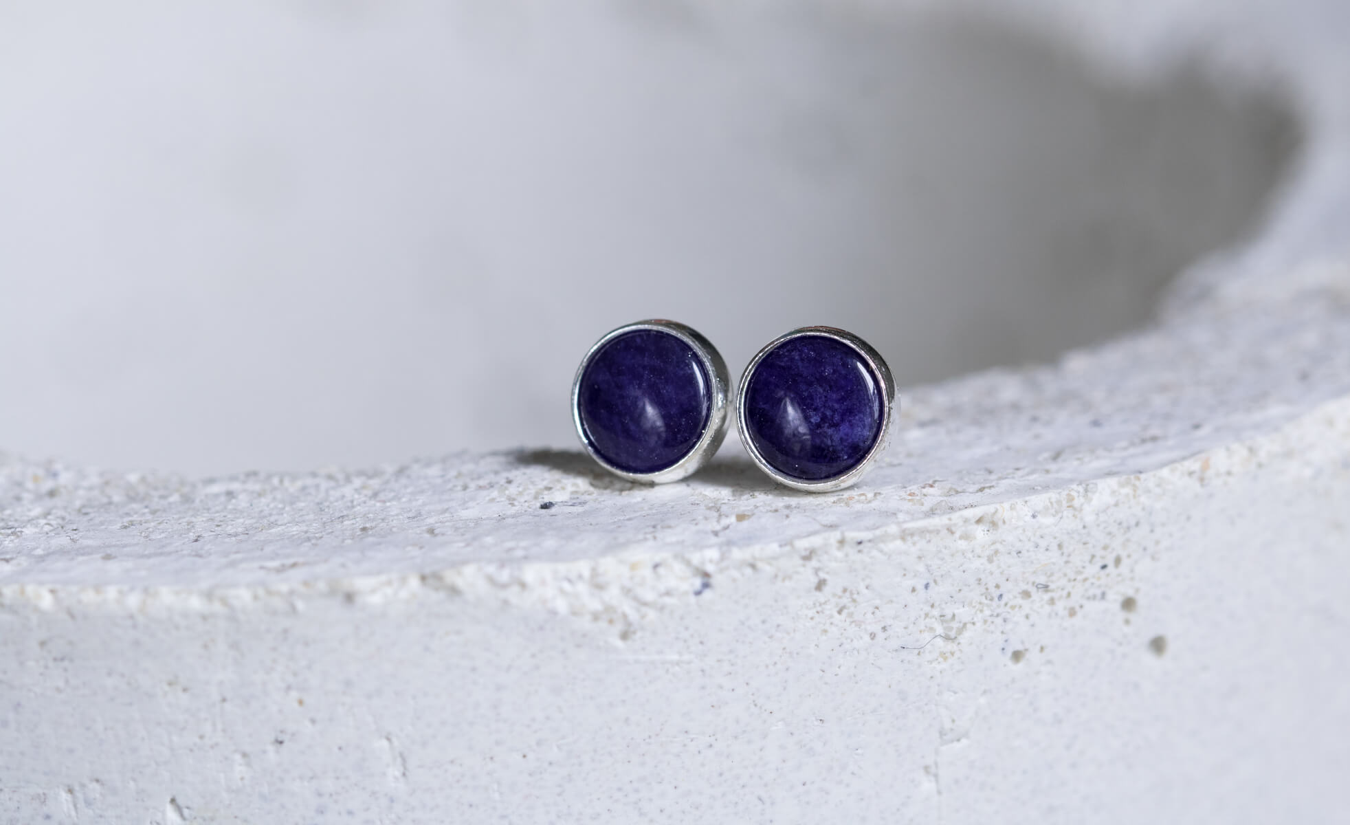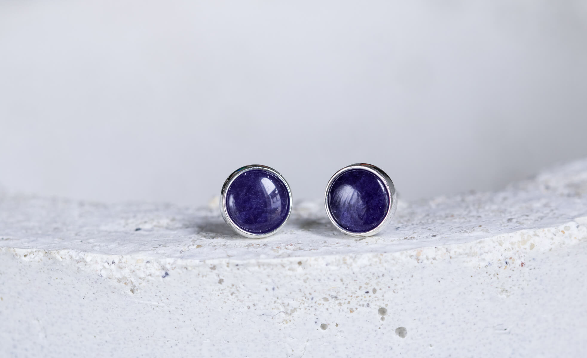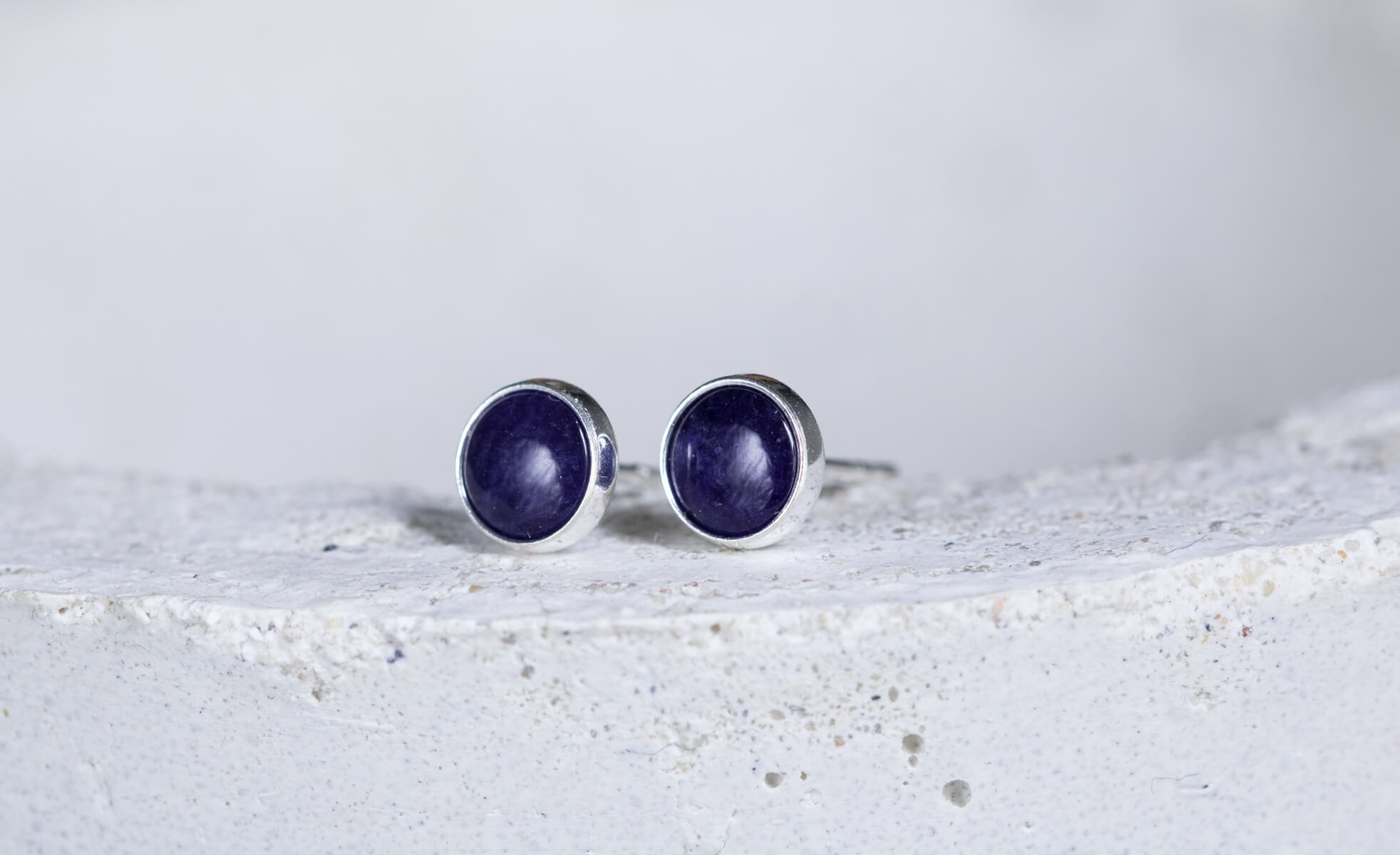 Kolczyki: srebro p.925, sodalit 6mm w formie wypukłej płytki.