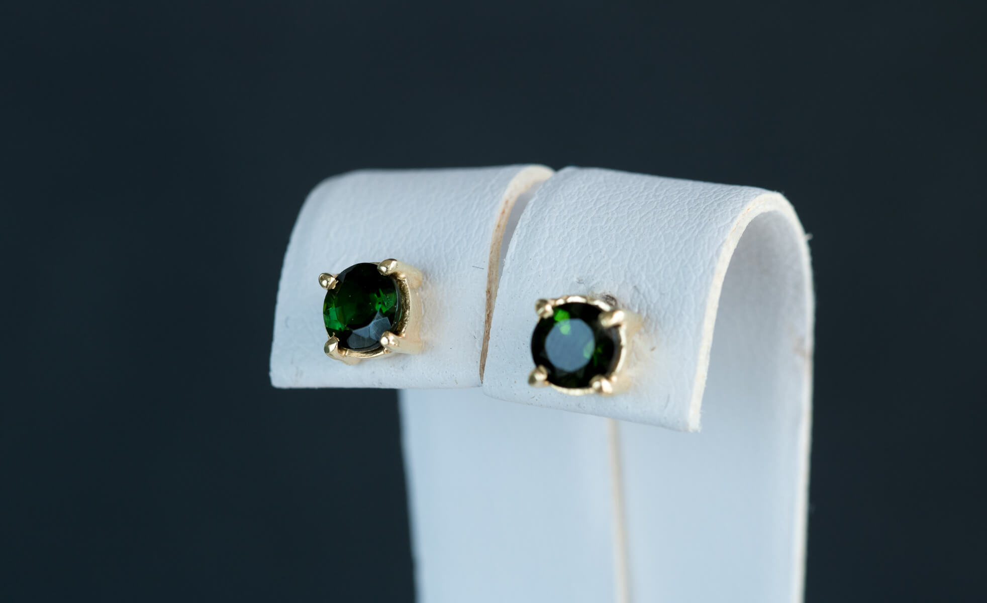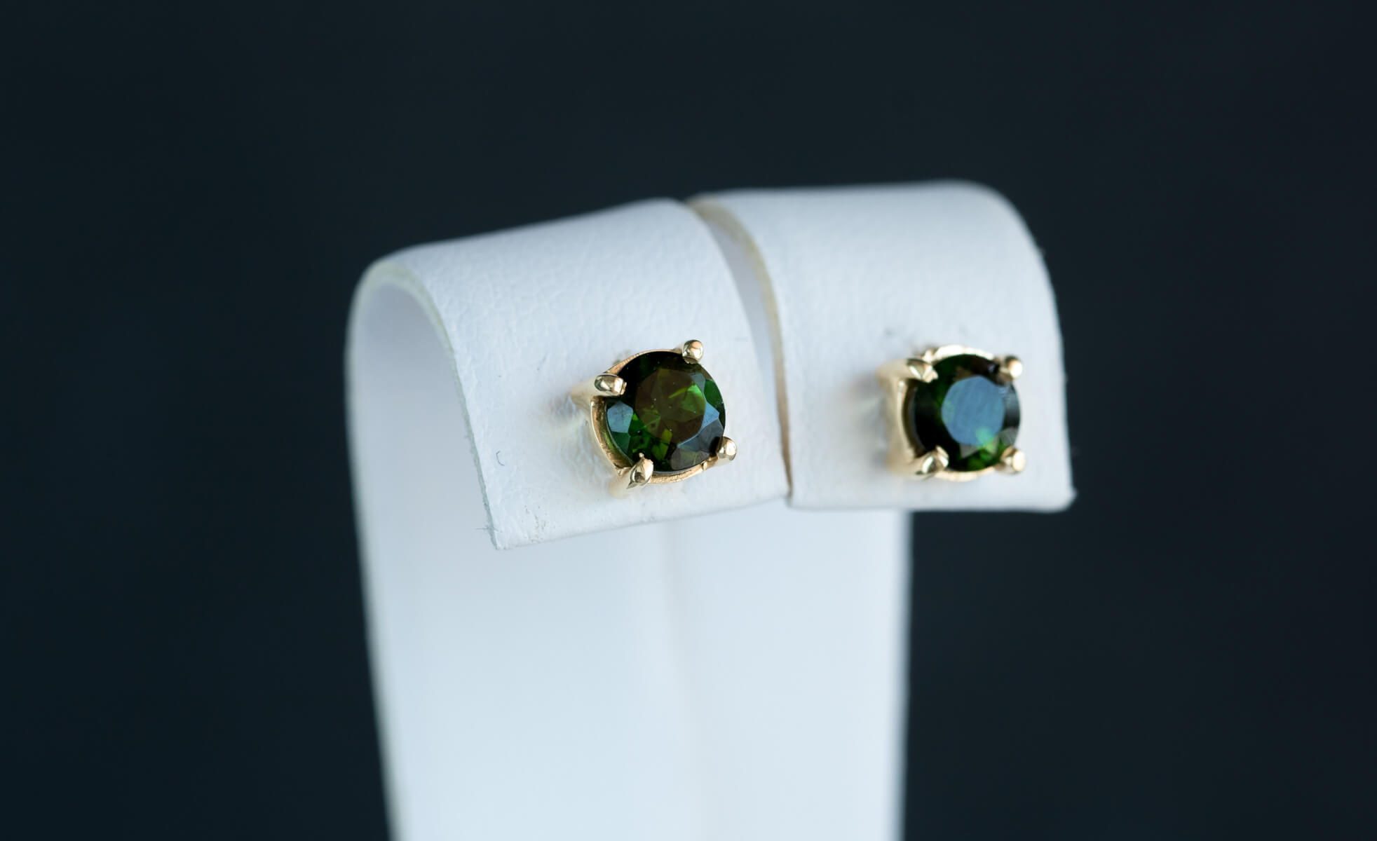 Srebrne kolczyki z turmalinem w odcieniu ciemnej zieleni K433