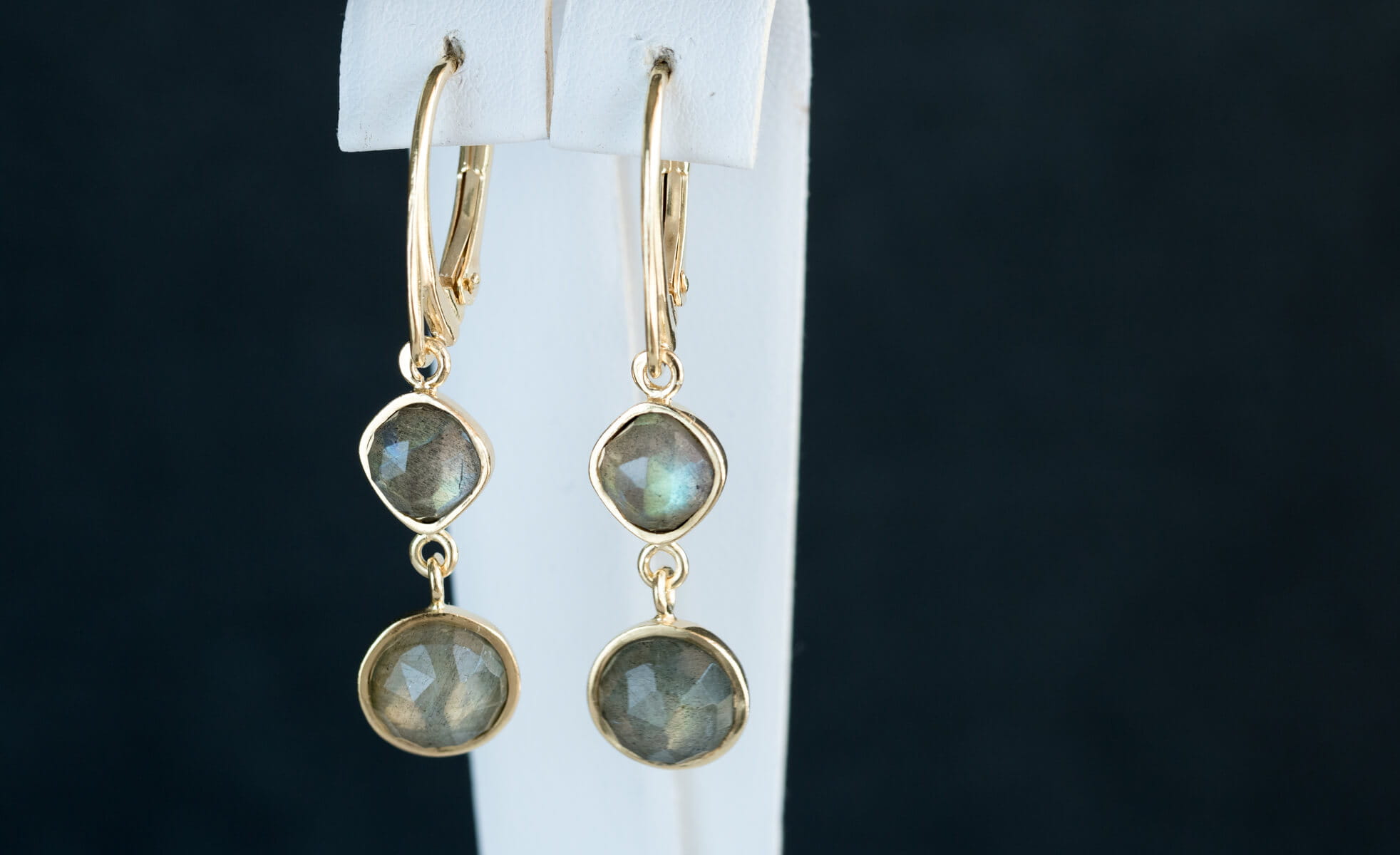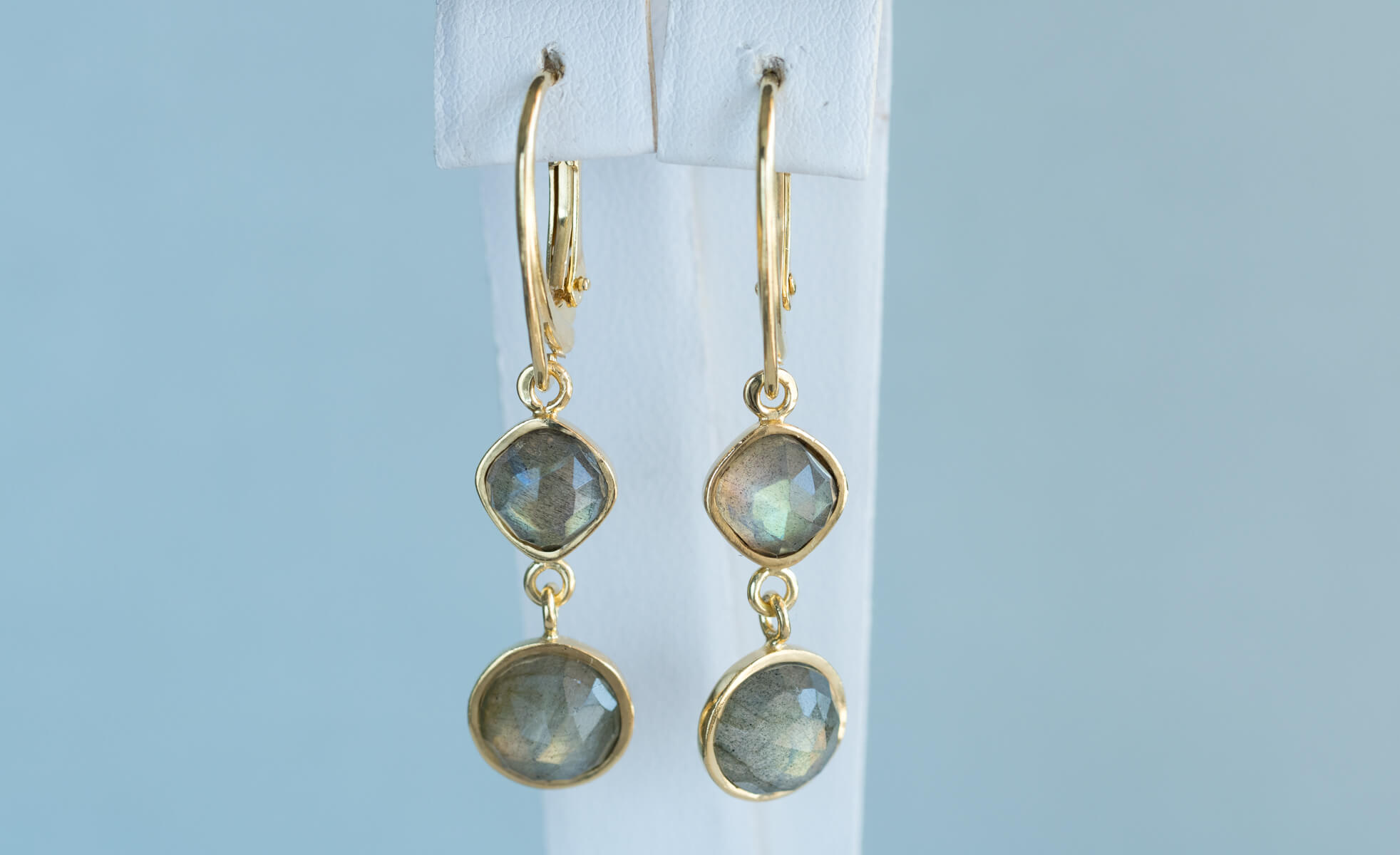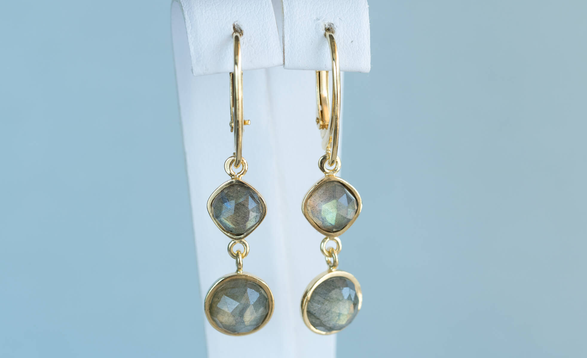 Wiszące kolczyki złocone z labradorytem K269