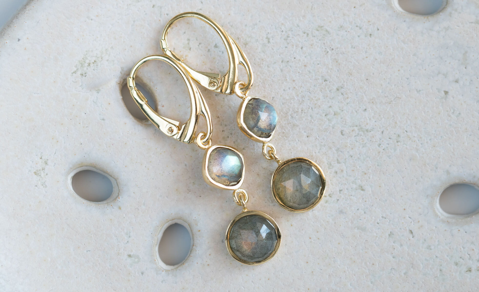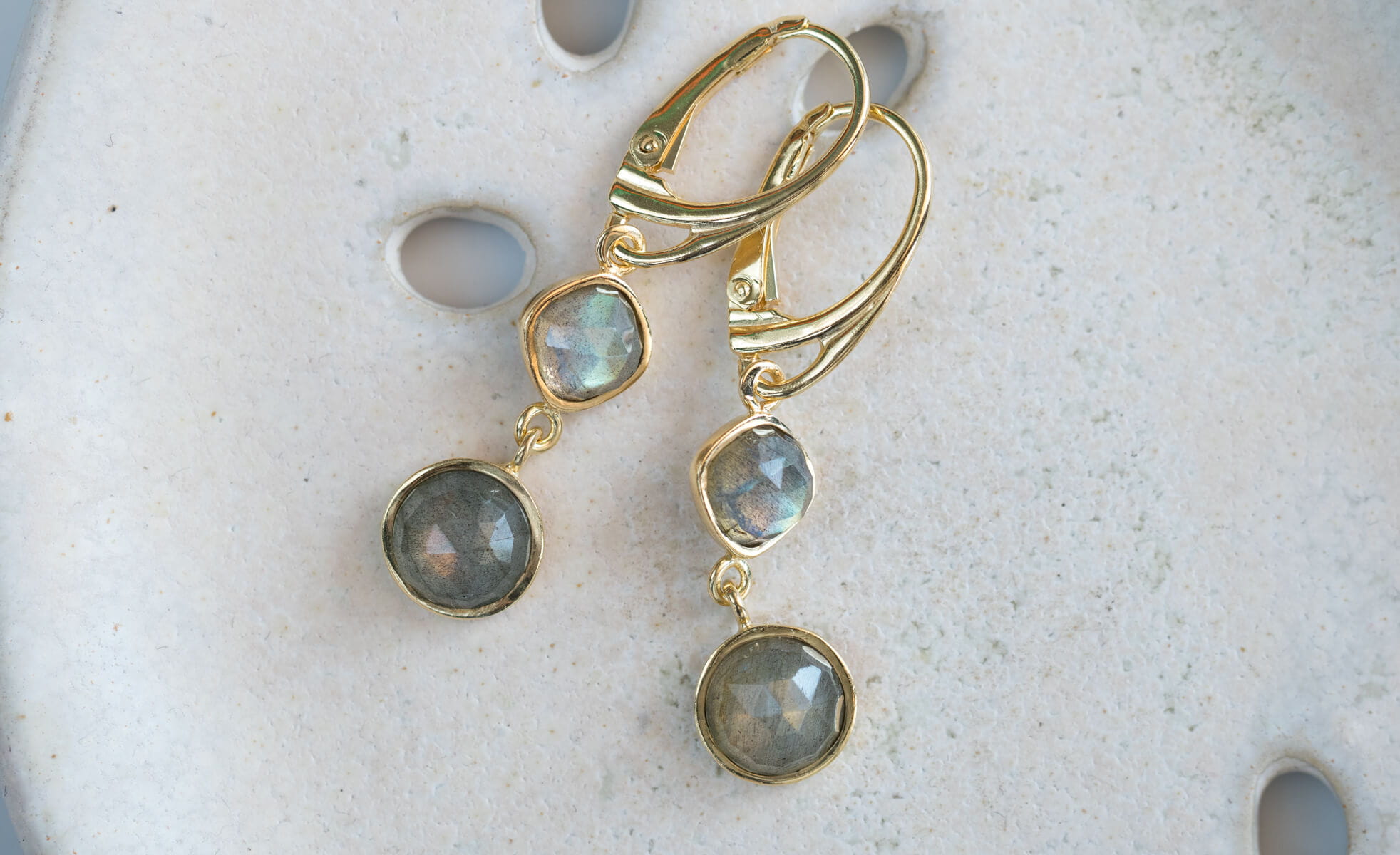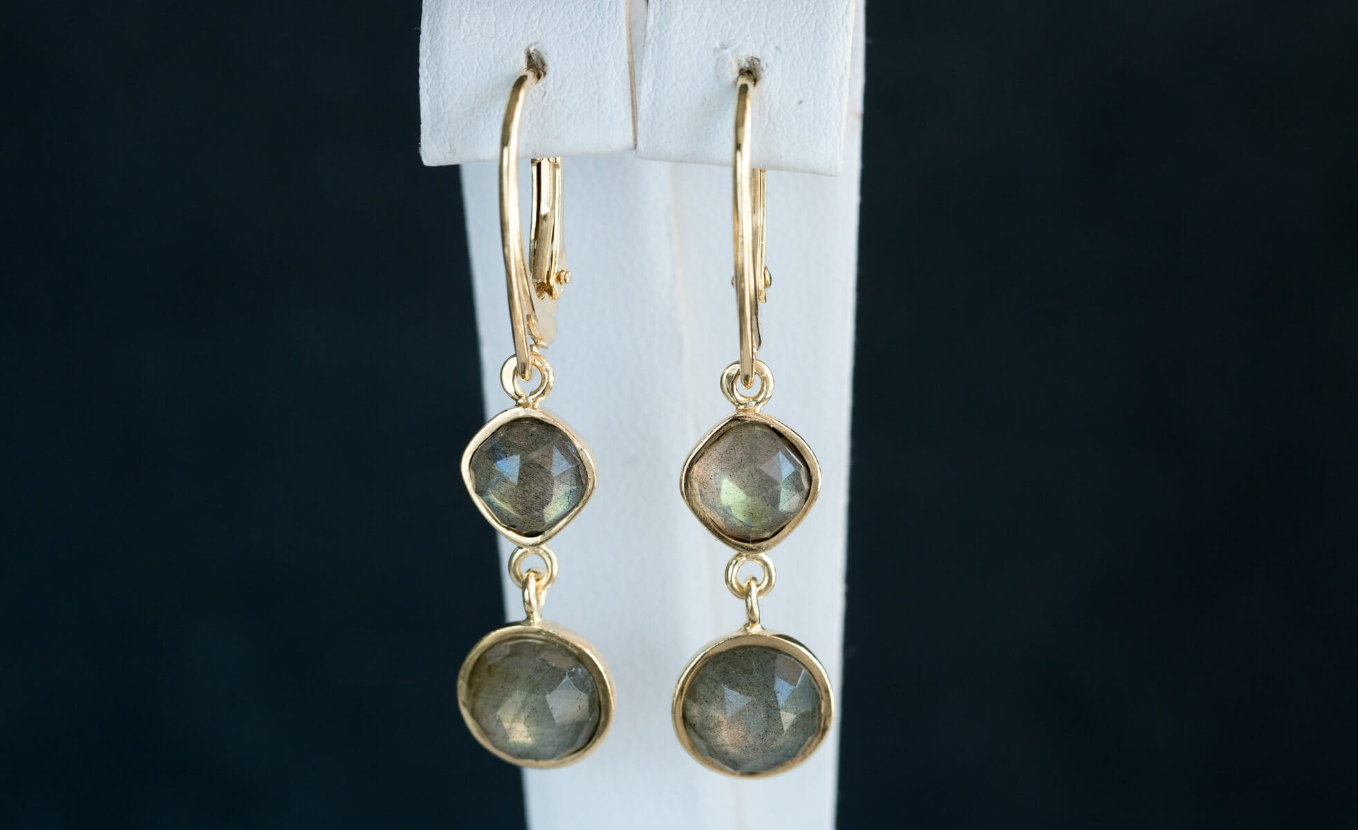 Wiszące kolczyki złocone z labradorytem K269