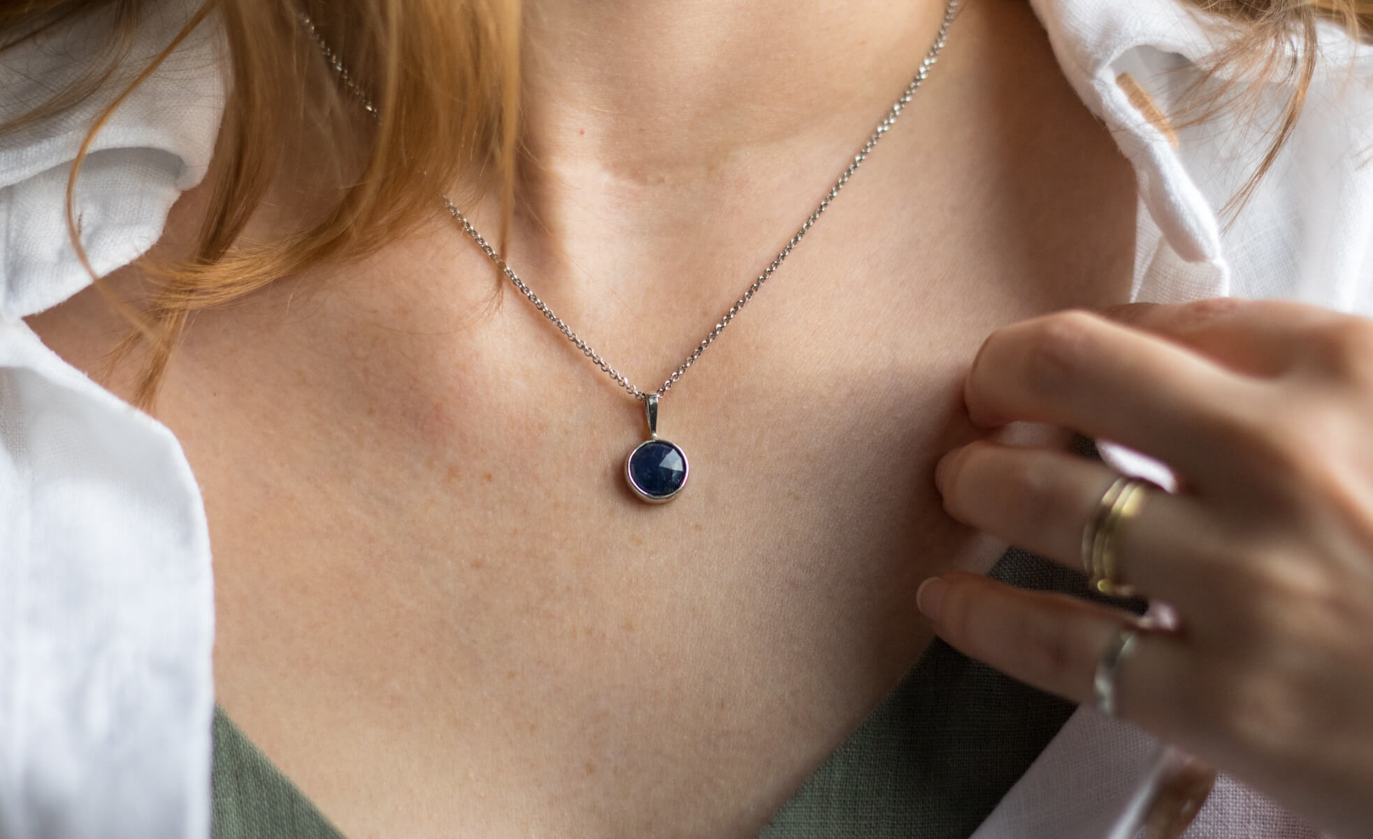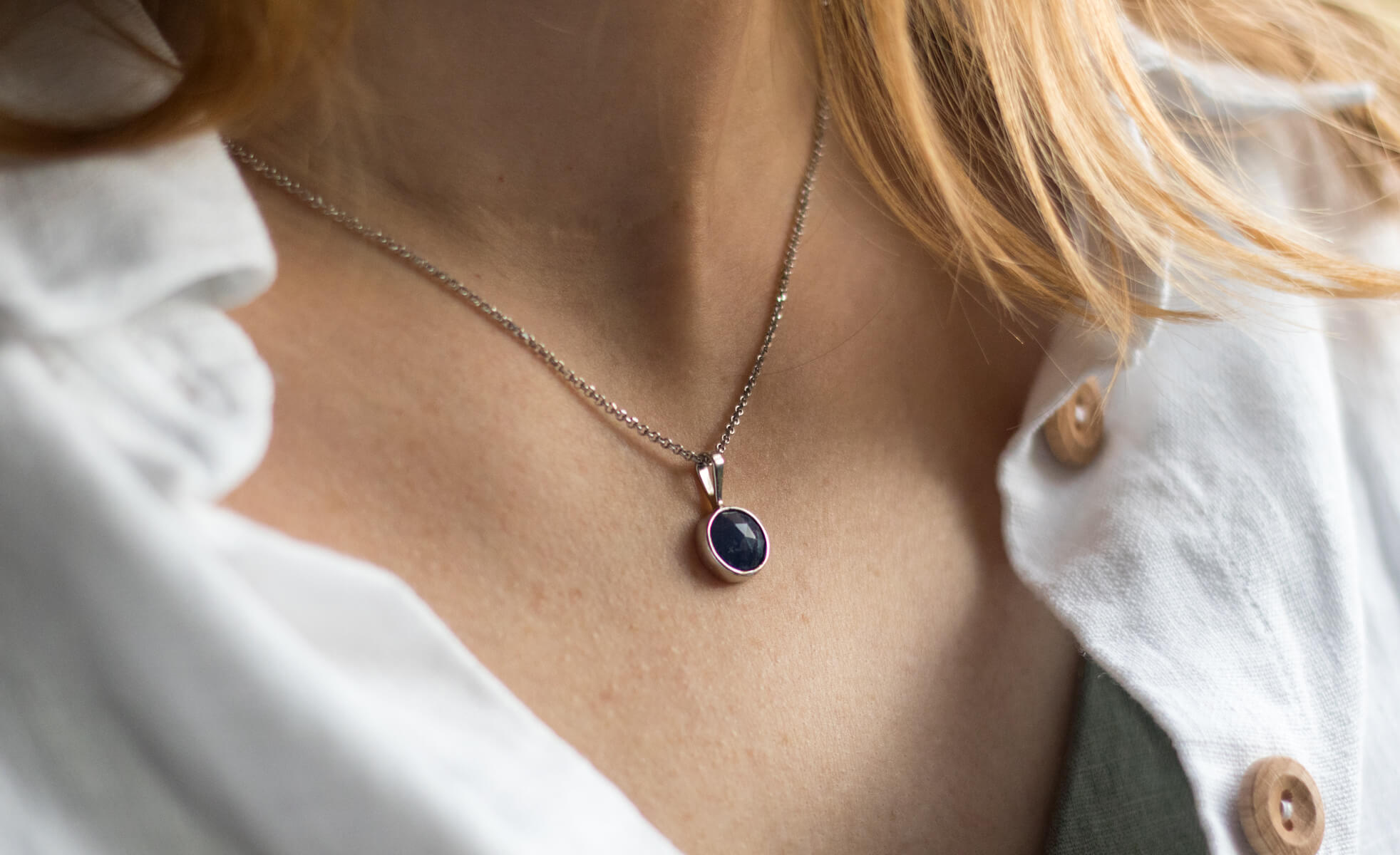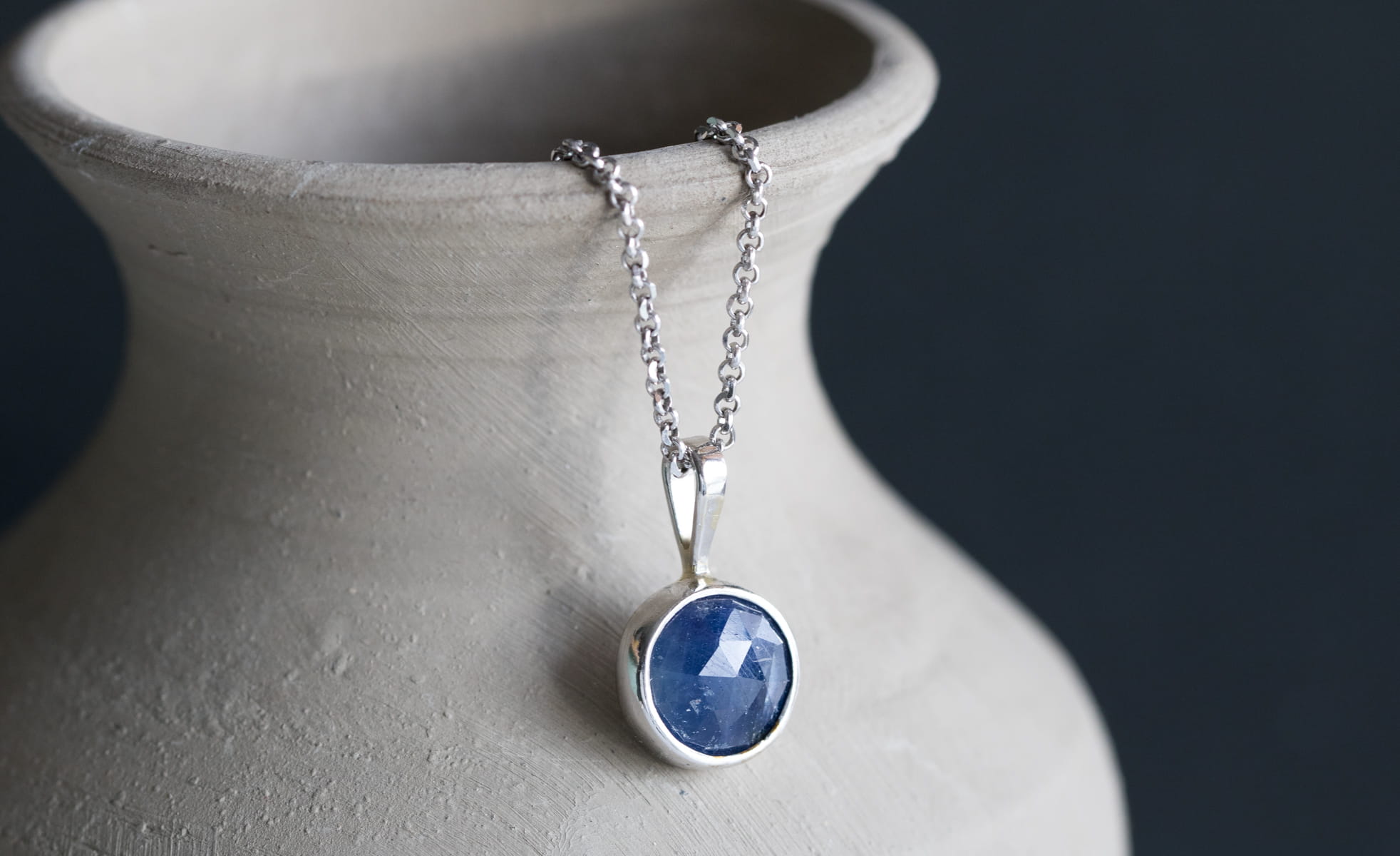 Naszyjnik z fasetowanym szafirem, średnica zawieszki: 10,35mm w srebrnej oprawie p.925.