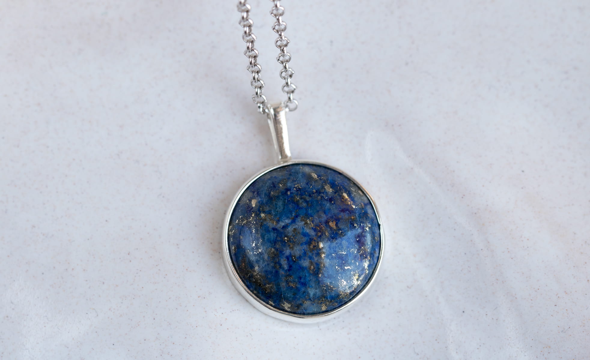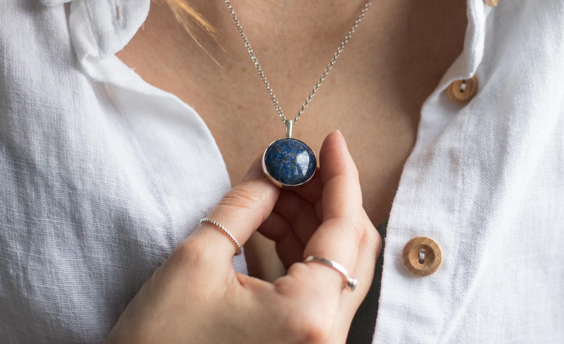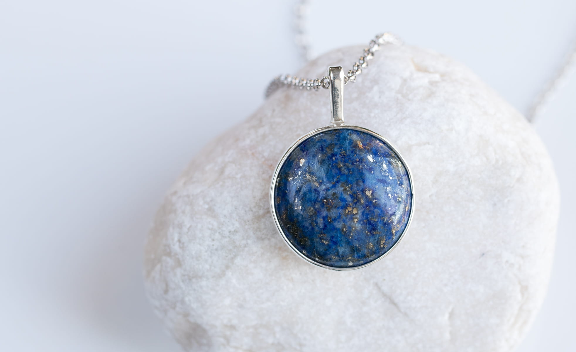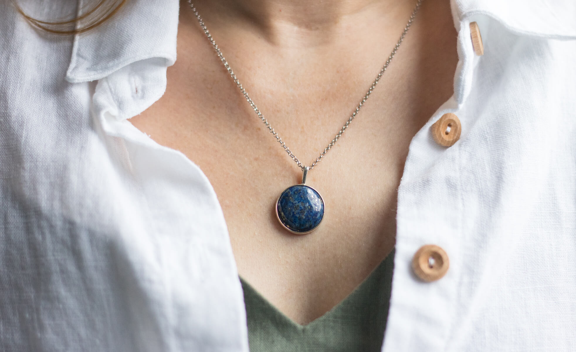 Naszyjnik z okrągłym 20mm lapis lazuli w granatowym odcieniu, w srebrnej oprawie p.925.