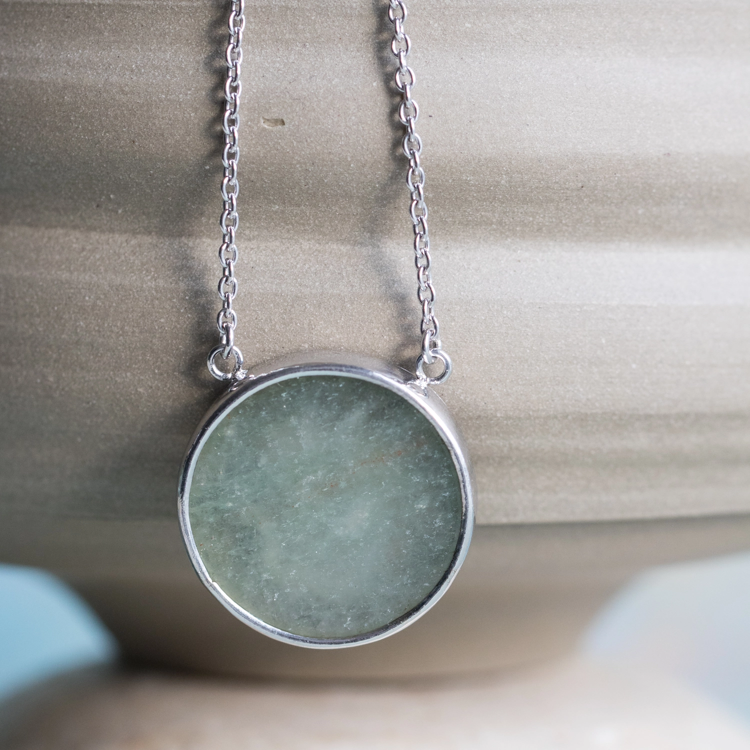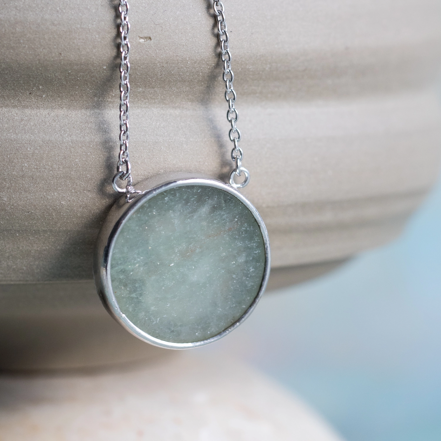 Srebrny naszyjnik z miętowym awenturynem 20mm.
