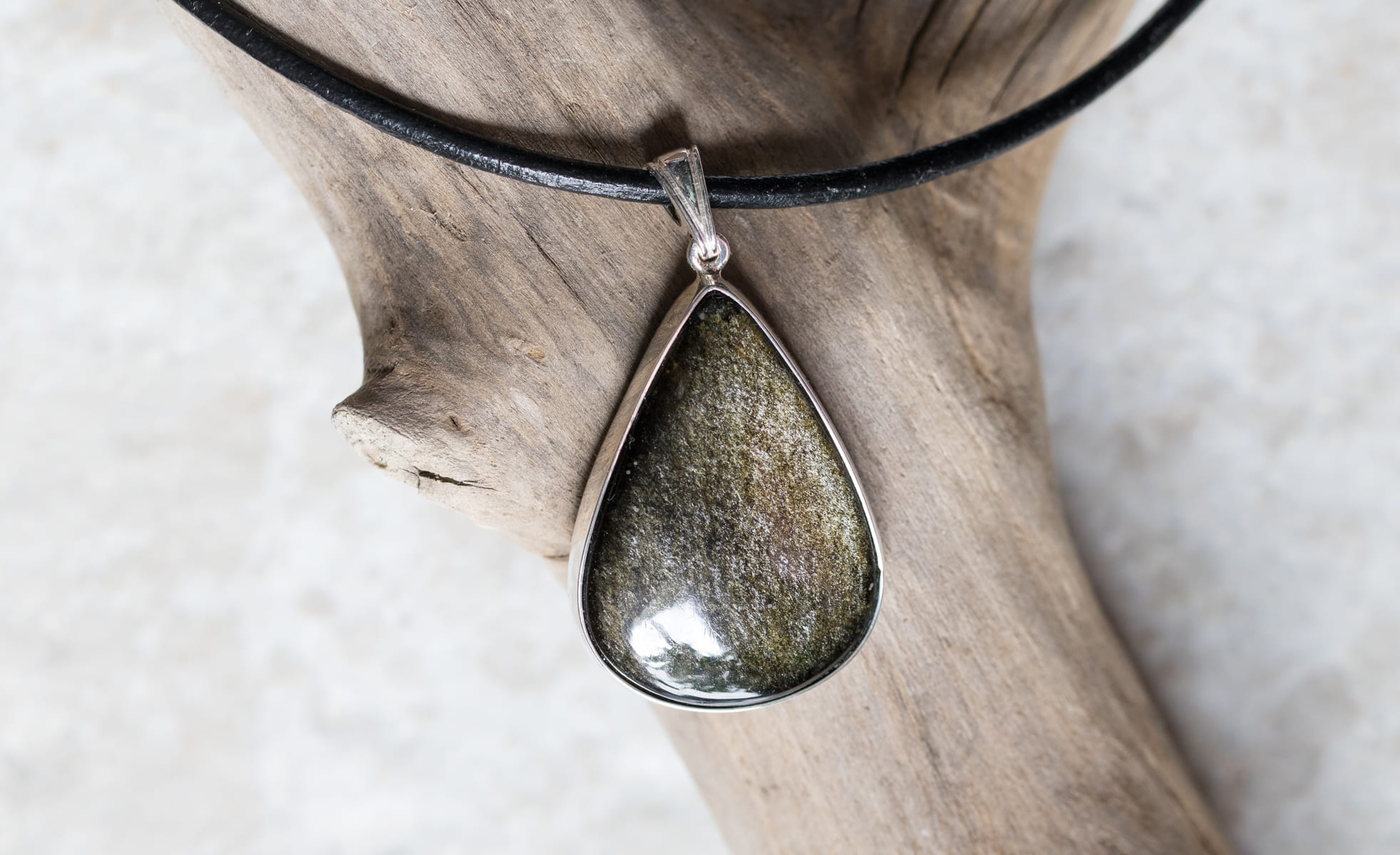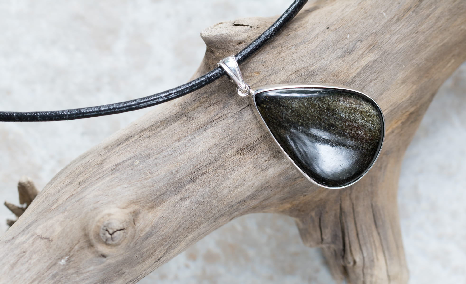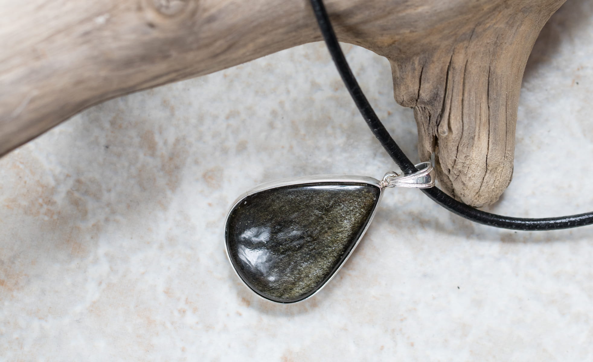 Naszyjnik: srebro p.925, obsydian złocisty 25x35mm, rzemień naturalny