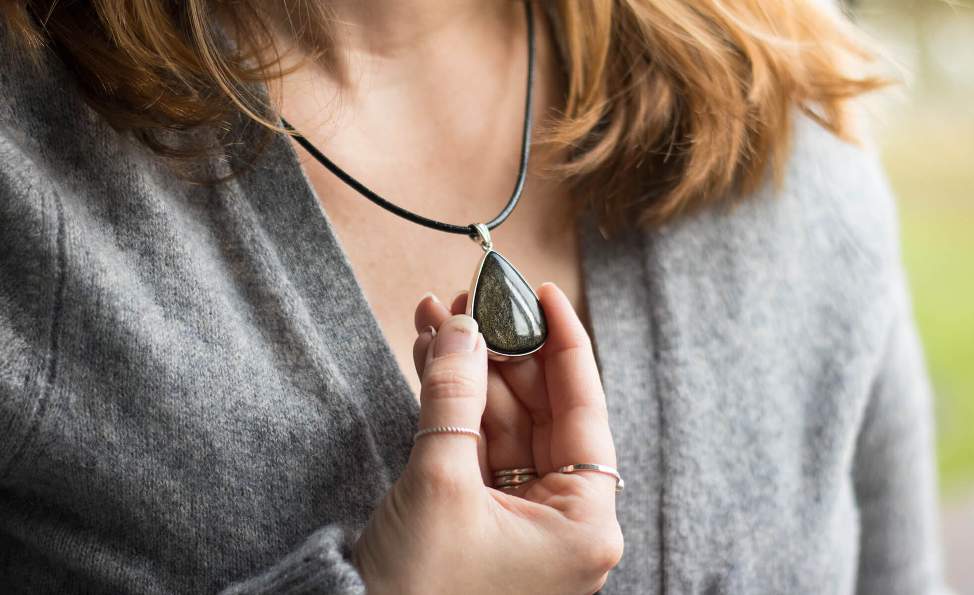 Naszyjnik: srebro p.925, obsydian złocisty 25x35mm (całkowita długość zawieszki 45mm), czarny rzemień naturalny