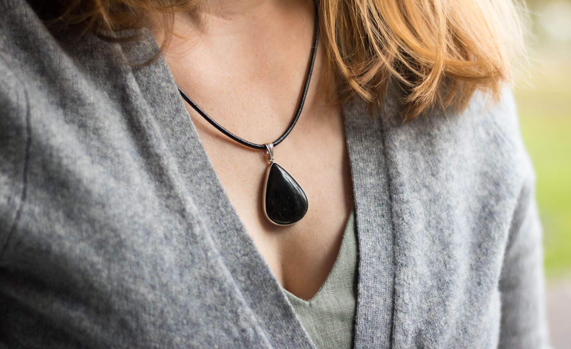 Kamień oprawiony jest w srebro (próba 925) i zawieszony na rzemieniu skórzanym w kolorze czarnym 50cm plus 5cm przedłużki