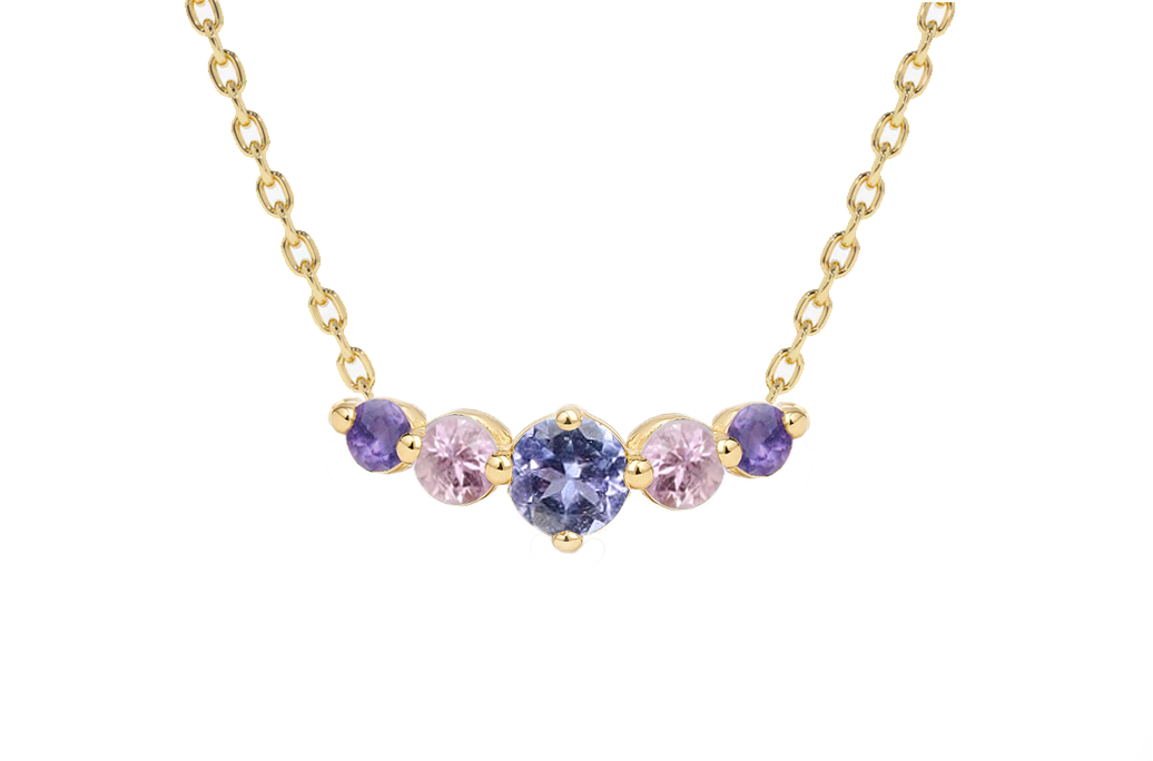 Kamień: tanzanit 3mm, różowy szafir 2x2,5mm, ametyst 2x2mm - bardzo subtelny, drobny naszyjnik
