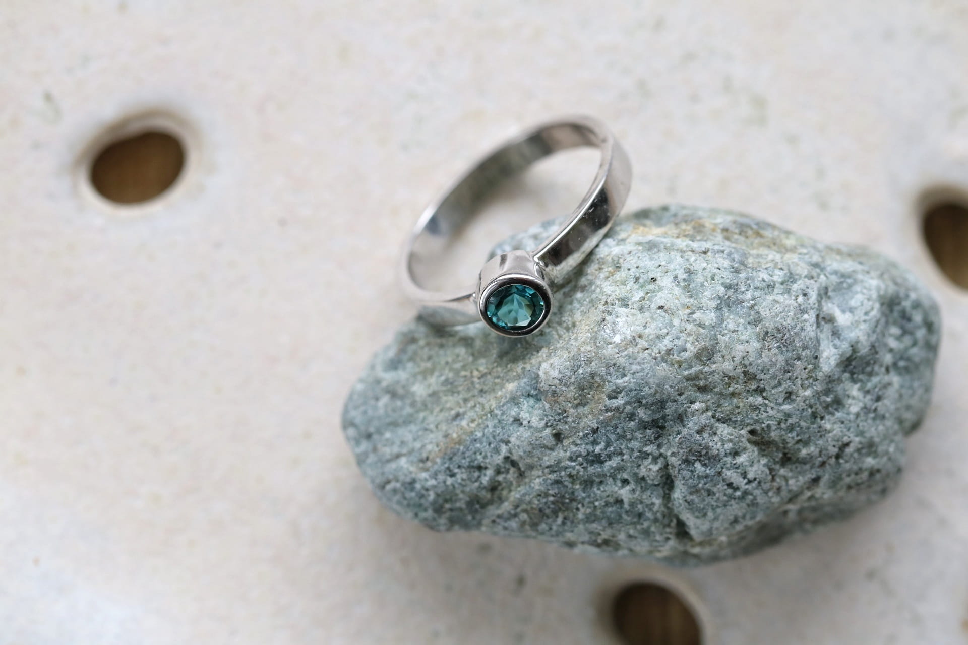 (Zdjęcie produktu to wizualizacja. Każdy egzemplarz tworzony jest na specjalne zamówienie w jednym egzemplarzu w ustalonym rozmiarze. Masz jakieś pytania – skontaktuj się mailowo – kontakt@mimsstudio.pl) Jeżeli podoba Ci się ten model, ale poszukujesz pierścionka z innym kamieniem/w innym kolorze – napisz do mnie!