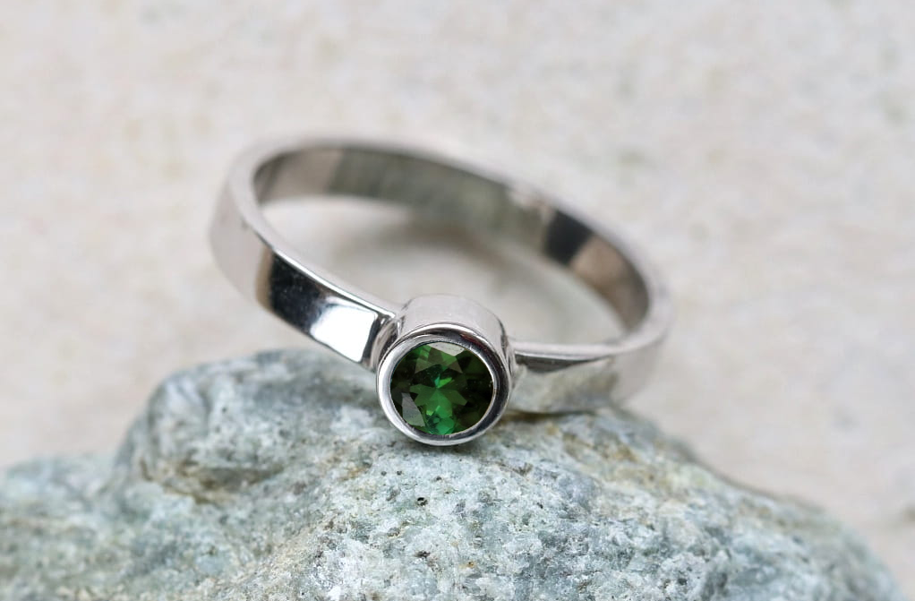Pierścionek srebrny z zielonym turmalinem P370