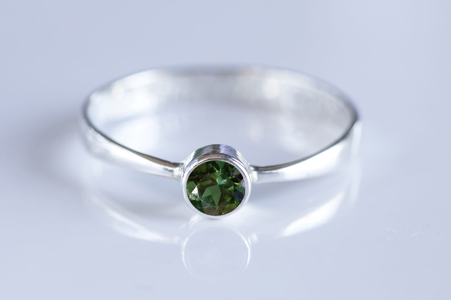 Pierścionek z leśnym okrągłym turmalinem P277