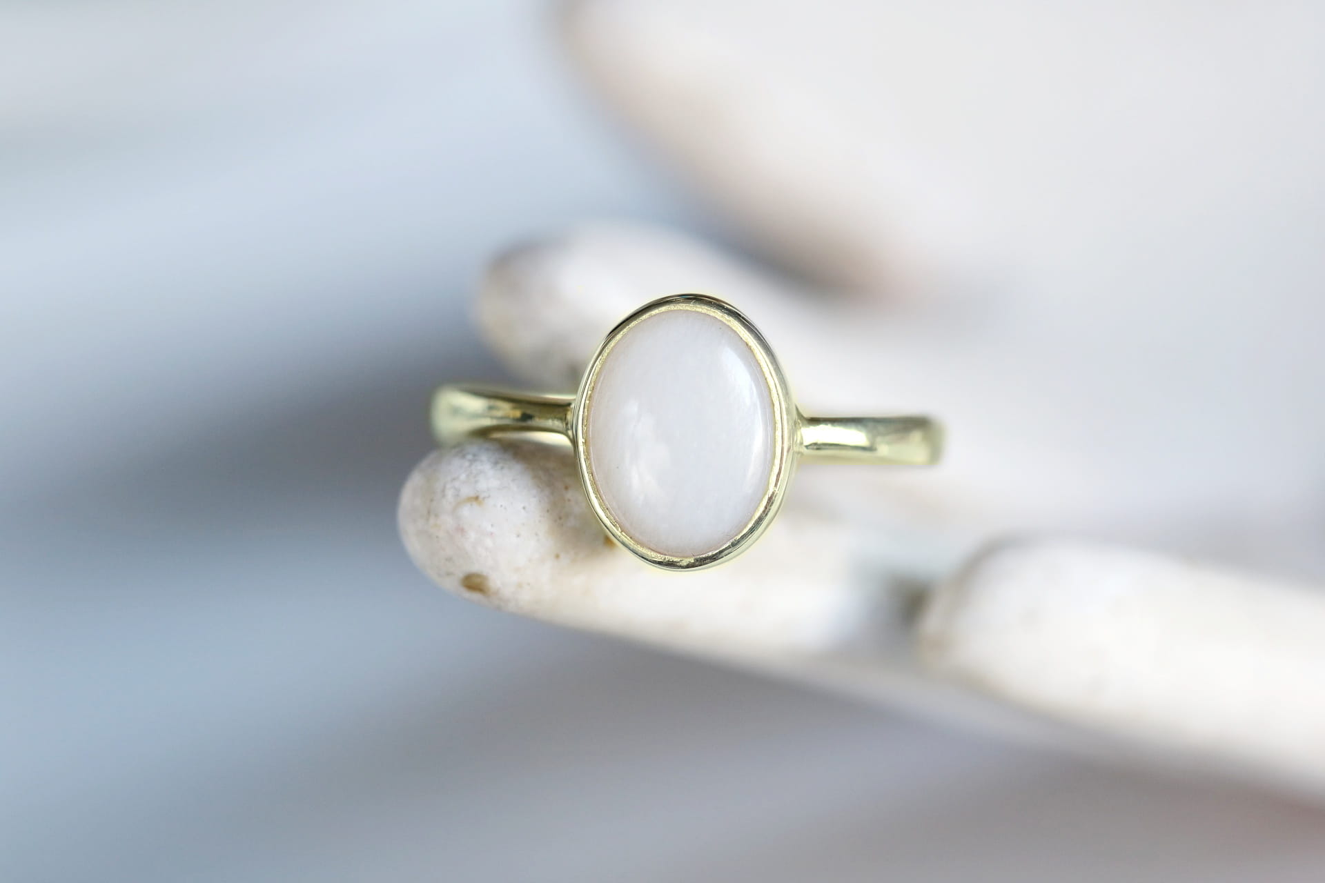 Pierścionek z mlecznym kamieniem księżycowym w złocie P73b