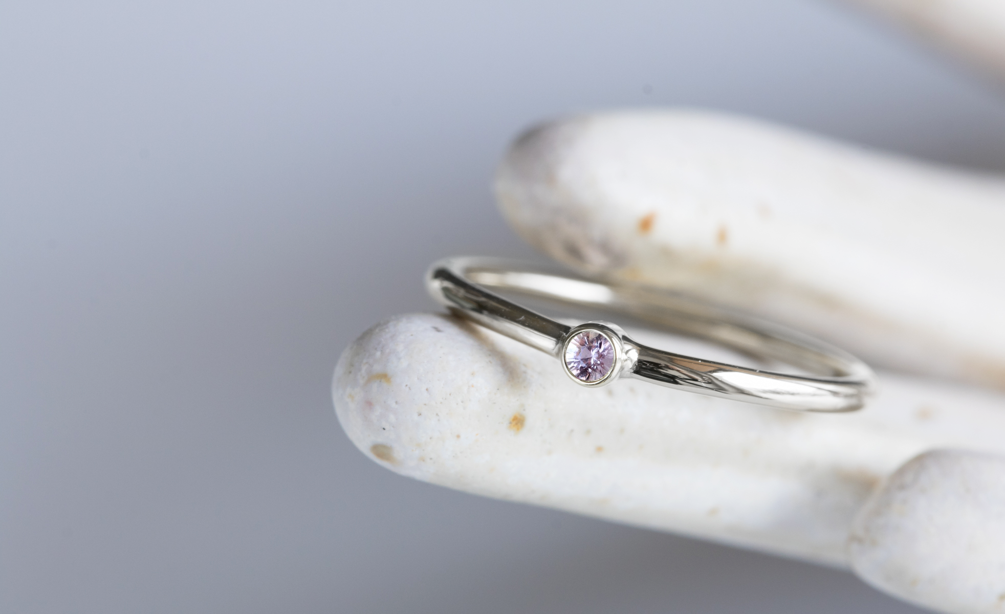 Srebrny pierścionek MINI z różowym szafirem 2,0mm
