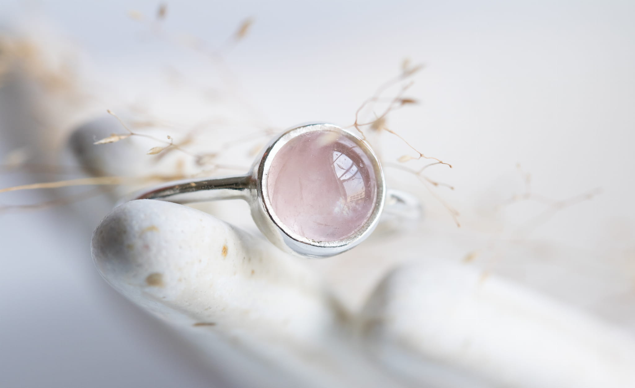 Pierścionek z kwarcem różowym o minimalistycznym designie, który z pewnością przypadnie do gustu każdej kobiecie.