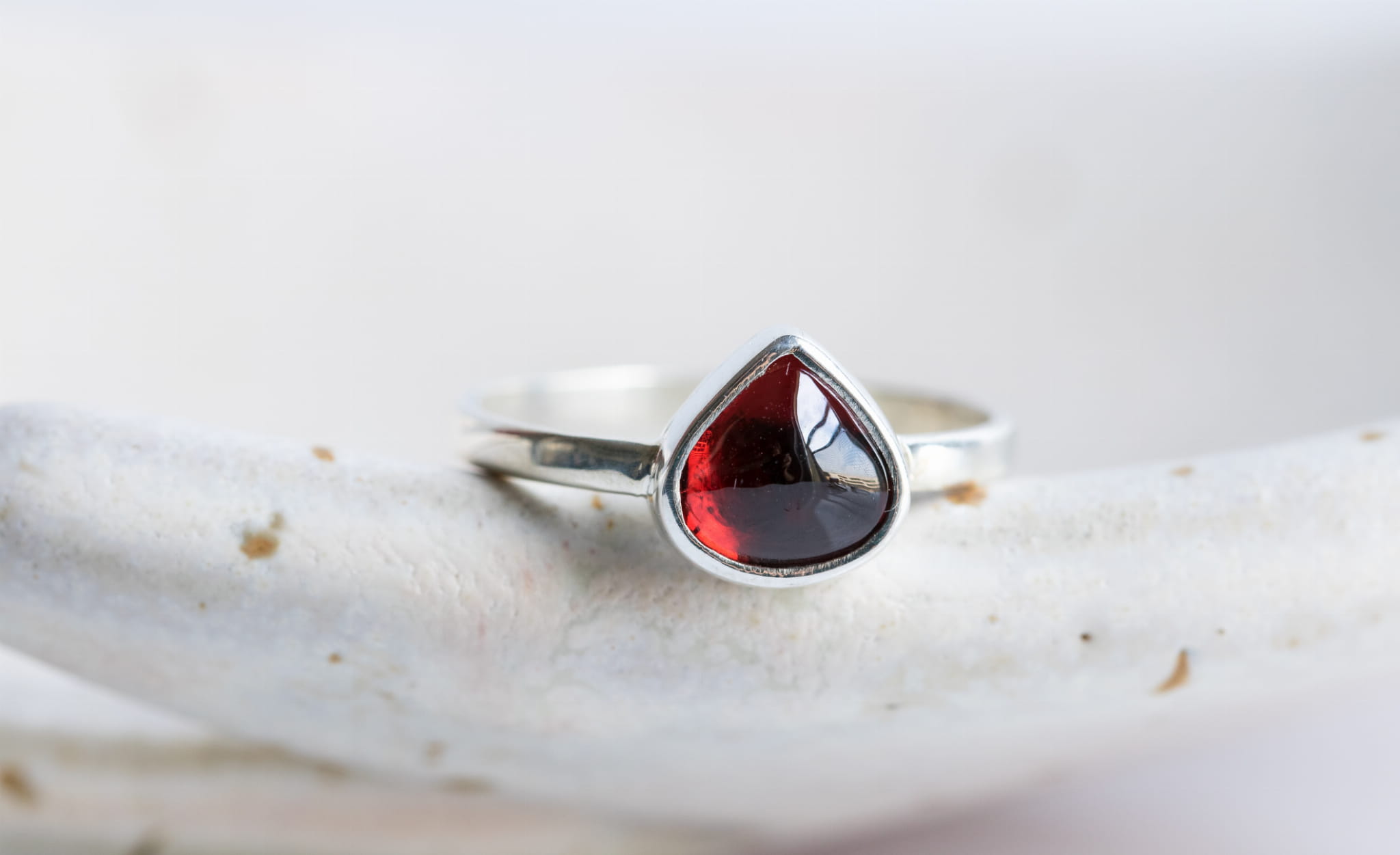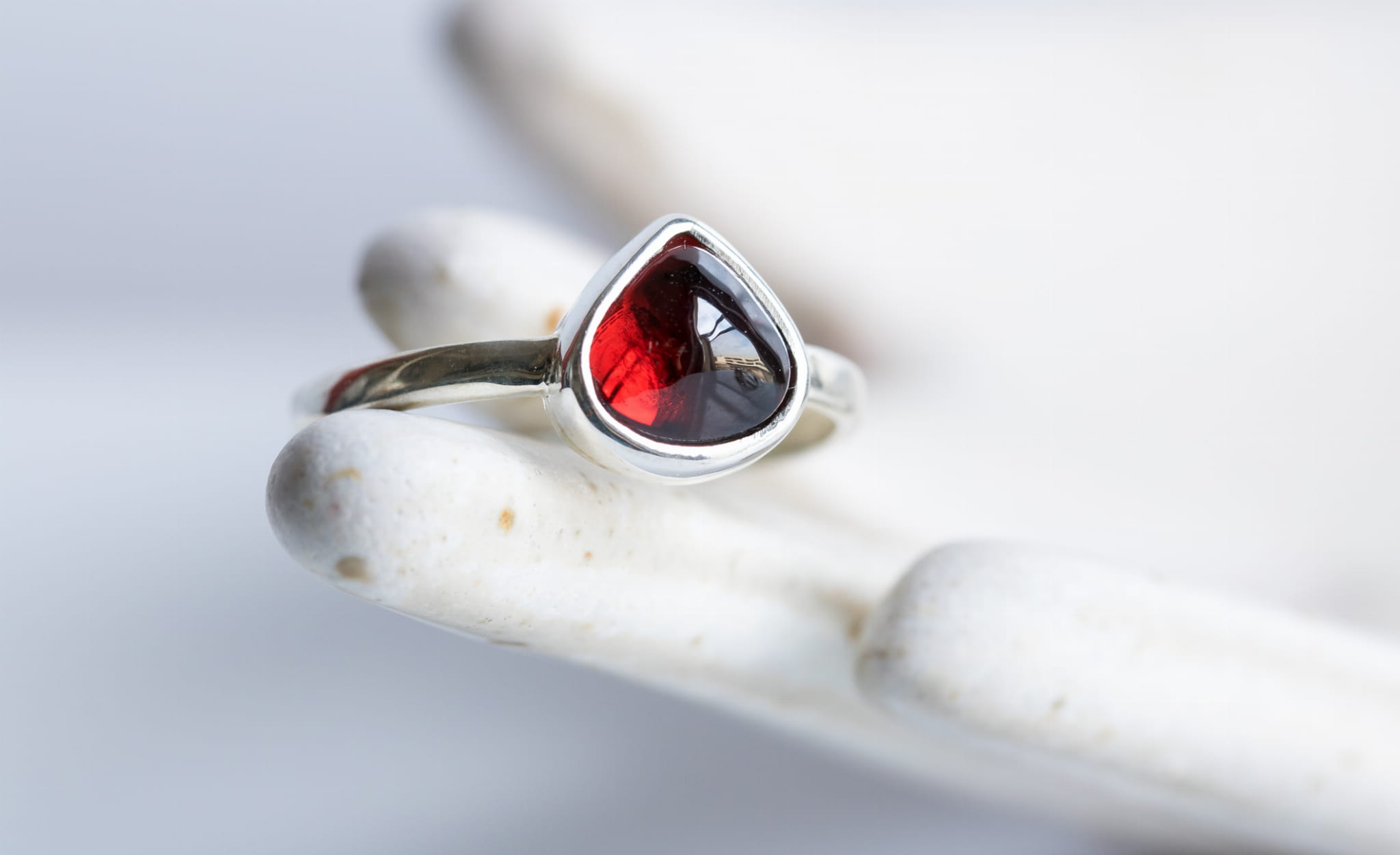 Pierścionek z granatem to wyjątkowy okaz Mimsowej biżuterii. Szlachetny głęboko czerwony kolor i niestandardowy, trójkątny, „łezkowy” kształt. Kamień mieni się i błyszczy, połyskuje i lśni – na palcu wygląda obłędnie. Pierścionki wykonywane są na zamówienie, każdy egzemplarz jest inny, nie znajdzie się też dwóch identycznych kamieni. Ręczne oprawianie w srebro (lub złoto) dodaje szlachetności i unikatowości. Pierścionki z kamieniami szlachetnymi to piękna ozdoba dla każdej kobiety. W razie problemów z wyborem rozmiaru lub potrzebą konsultacji – zapraszam do kontaktu.