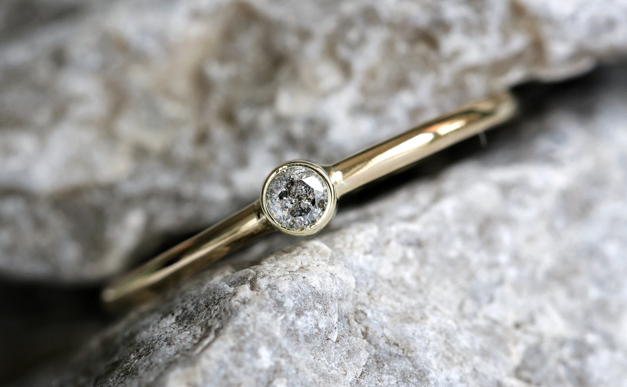 Złoty pierścionek MINI z diamentem sól i pieprz 2,5mm P367