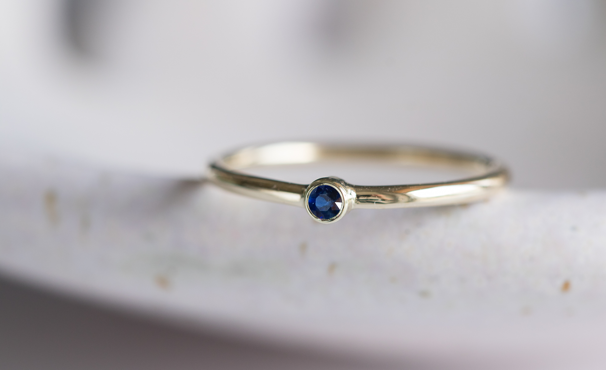 Złoty pierścionek MINI z granatowym szafirem 2,5mm