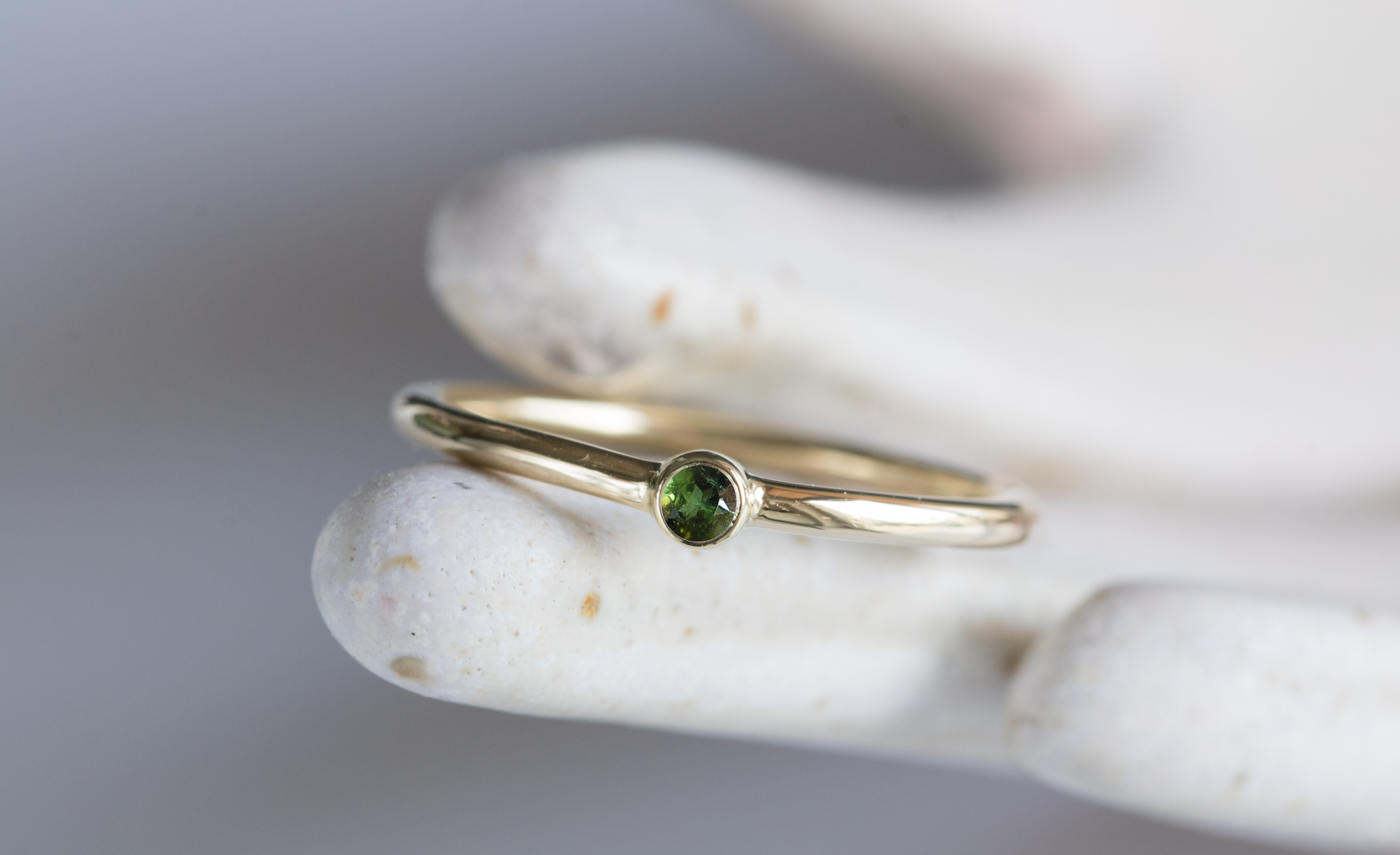 Złoty pierścionek MINI z zielonym turmalinem 2,5mm