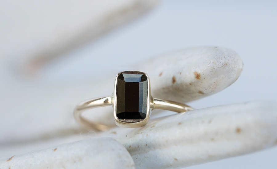 Czerń, która intryguje i przyciąga spojrzenia – onyks to kamień siły, determinacji i ochrony. W tym niezwykle stylowym pierścionku osadziliśmy onyks o szlifie oktagonu (4x6,1 mm), którego głęboka, aksamitna czerń nadaje biżuterii wyjątkowego charakteru. Onyks od wieków uważany jest za kamień dodający odwagi, pomagający zachować równowagę i pewność siebie.