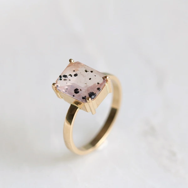 Nie pokazywałam Wam jeszcze wyjątkowego pierścionka jaki powstał w grudniu. To kwarc różowy z inkluzjami oprawiony w złoto 585, jak każdy pierścionek powstał na zamówienie w jednym egzemplarzu. Mam jeszcze kilka innych oktagonów do oprawy więc jeśli urzekł Cię ten Mims to zapraszam do kontaktu. Inne propozycje kwarców różowych z diopsydem ukrywają się na stronie w kolekcji ‚Różane unikaty’ 😊