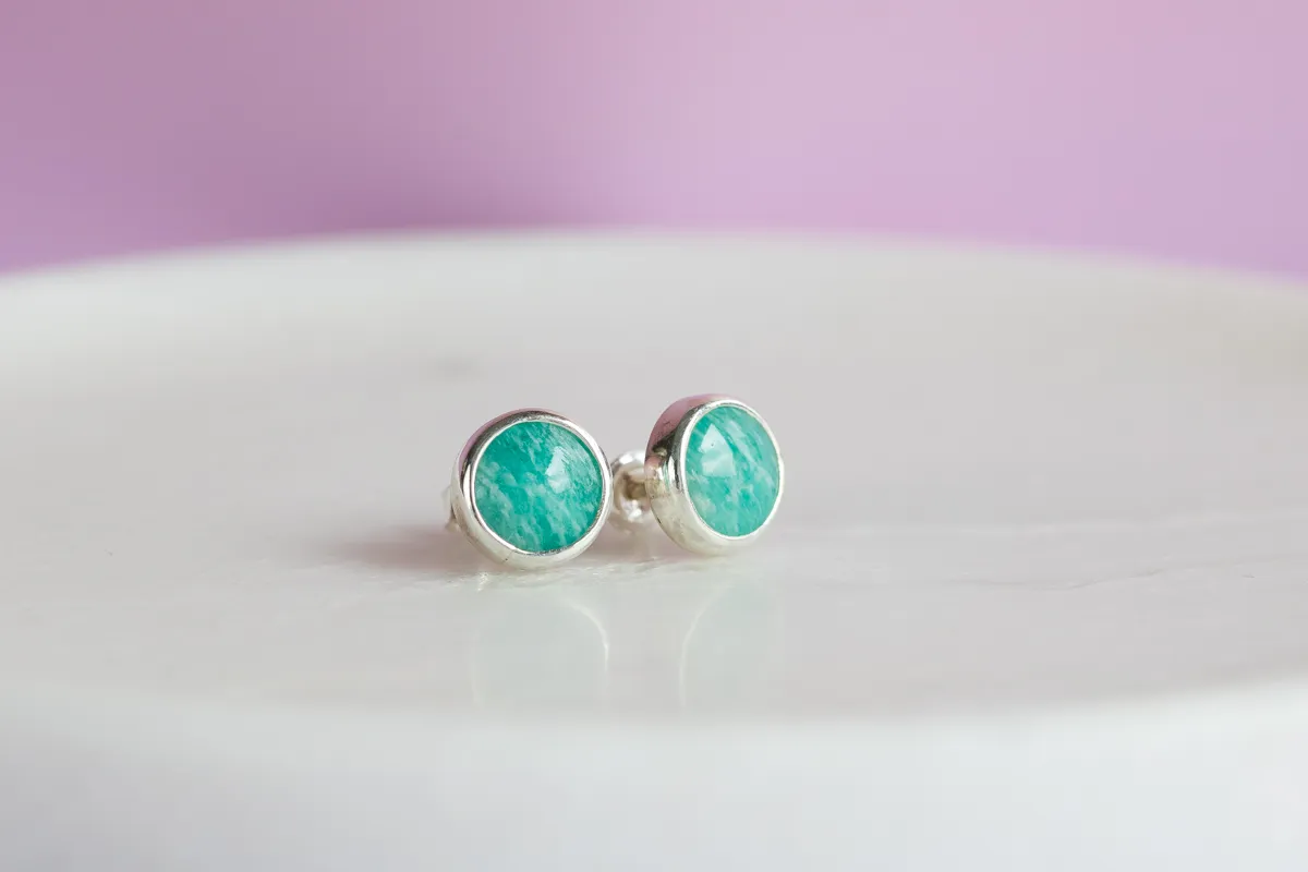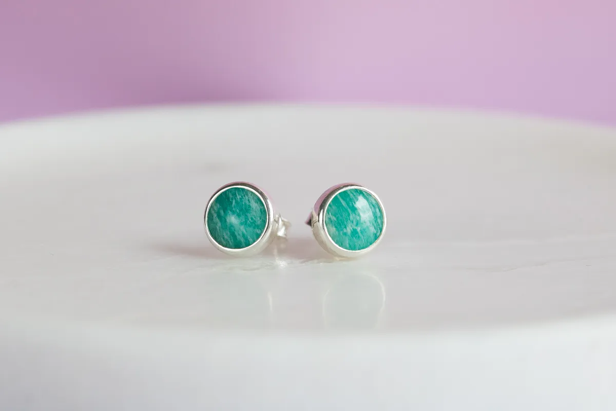 Amazonit - kolczyki srebrne 8mm K201