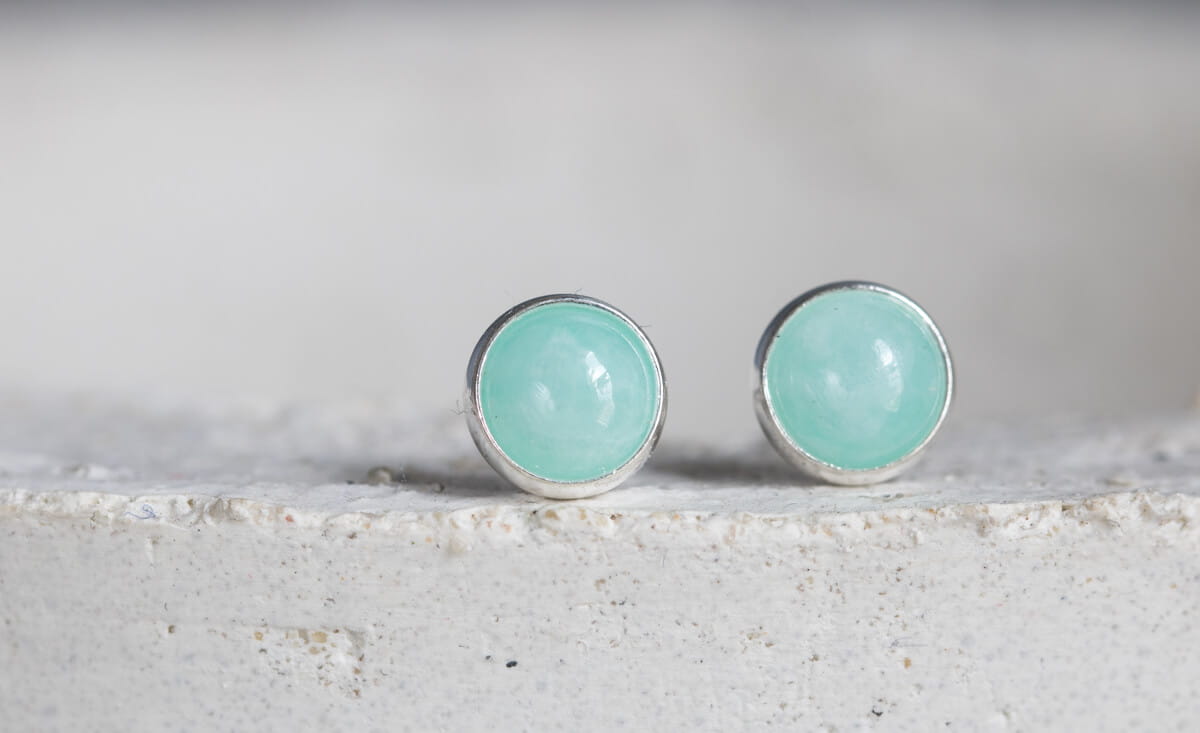 Kolczyki: srebro p.925, amazonit 6mm w srebrnej oprawie.