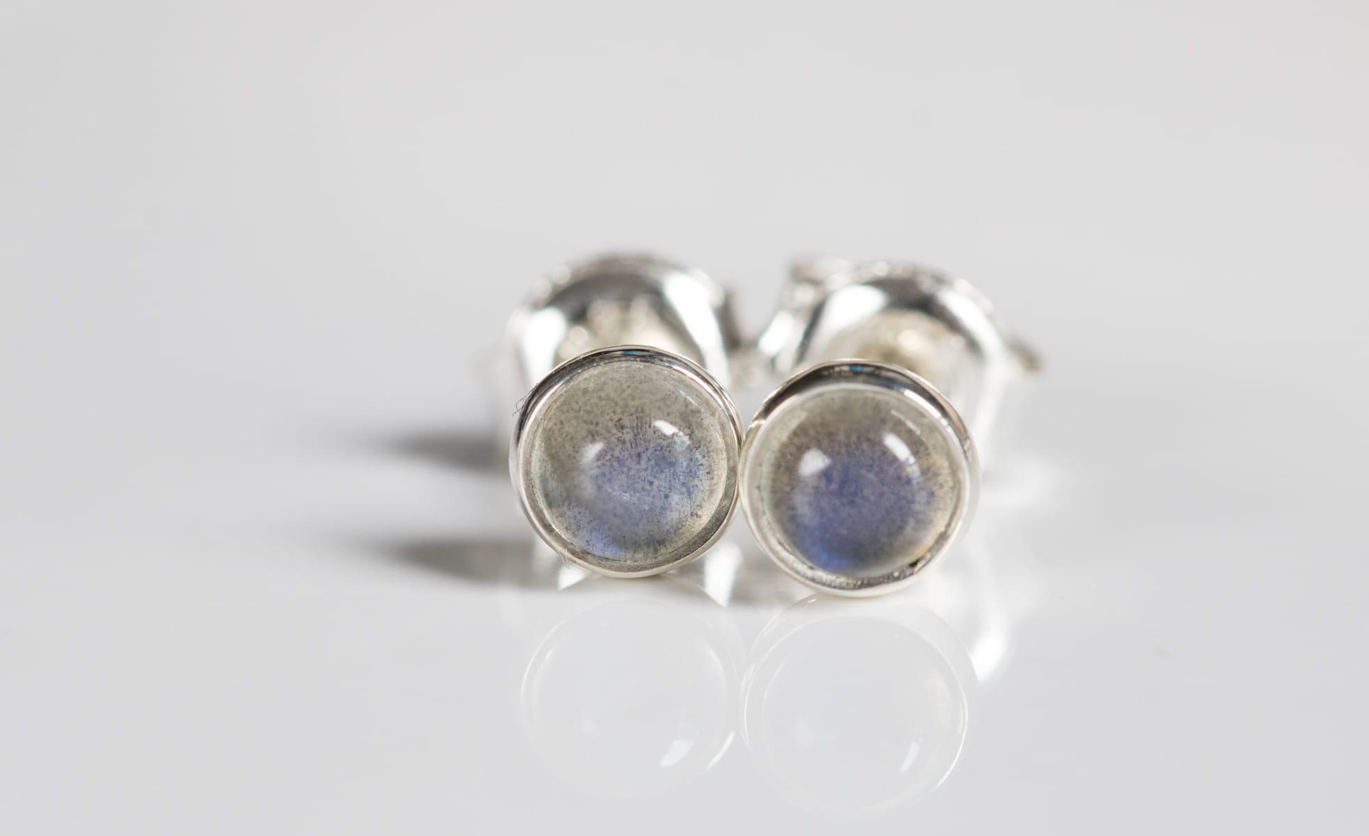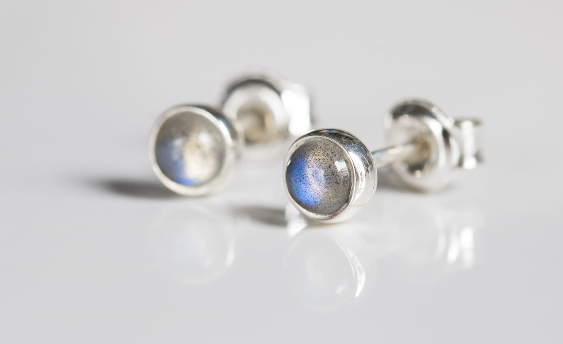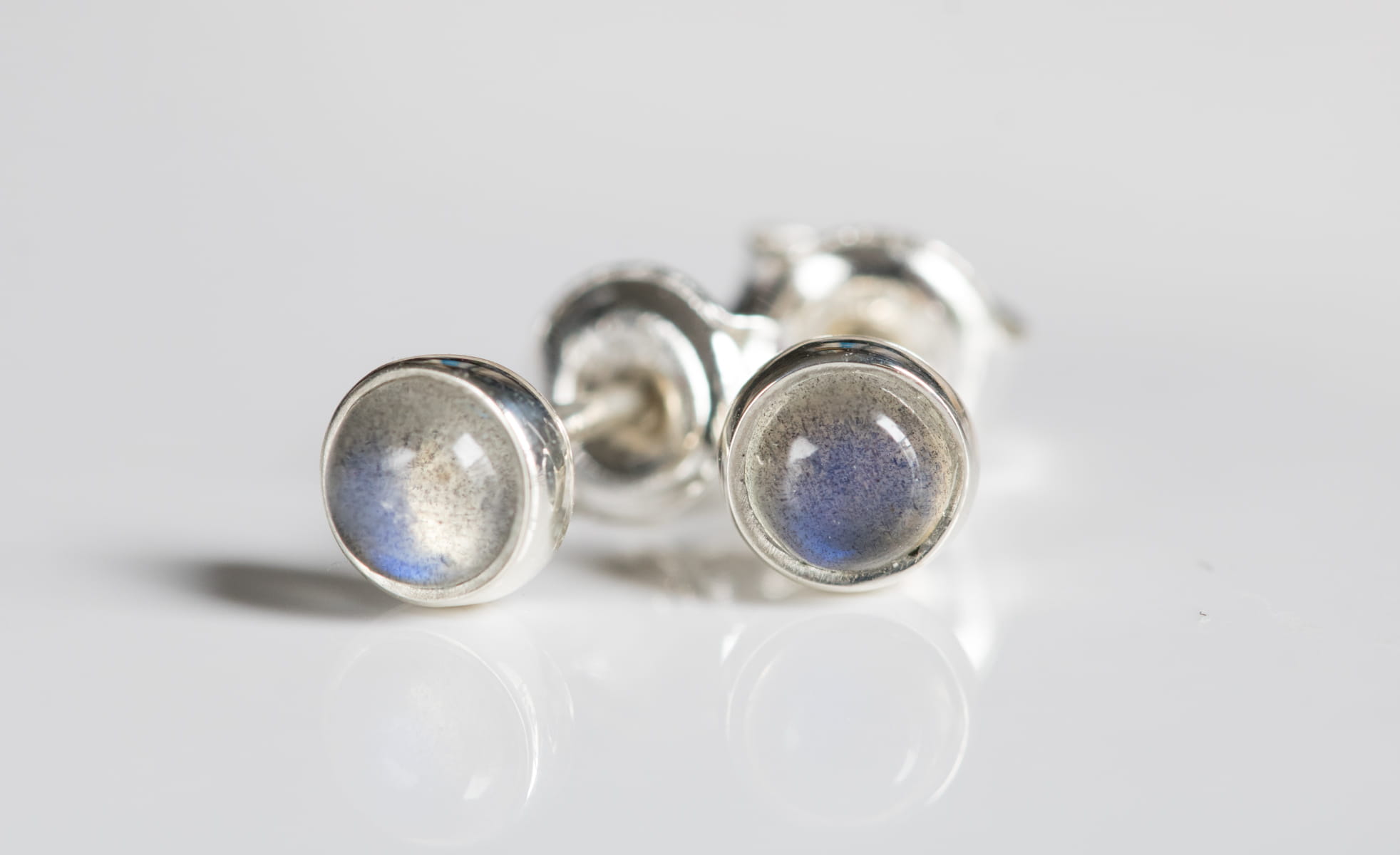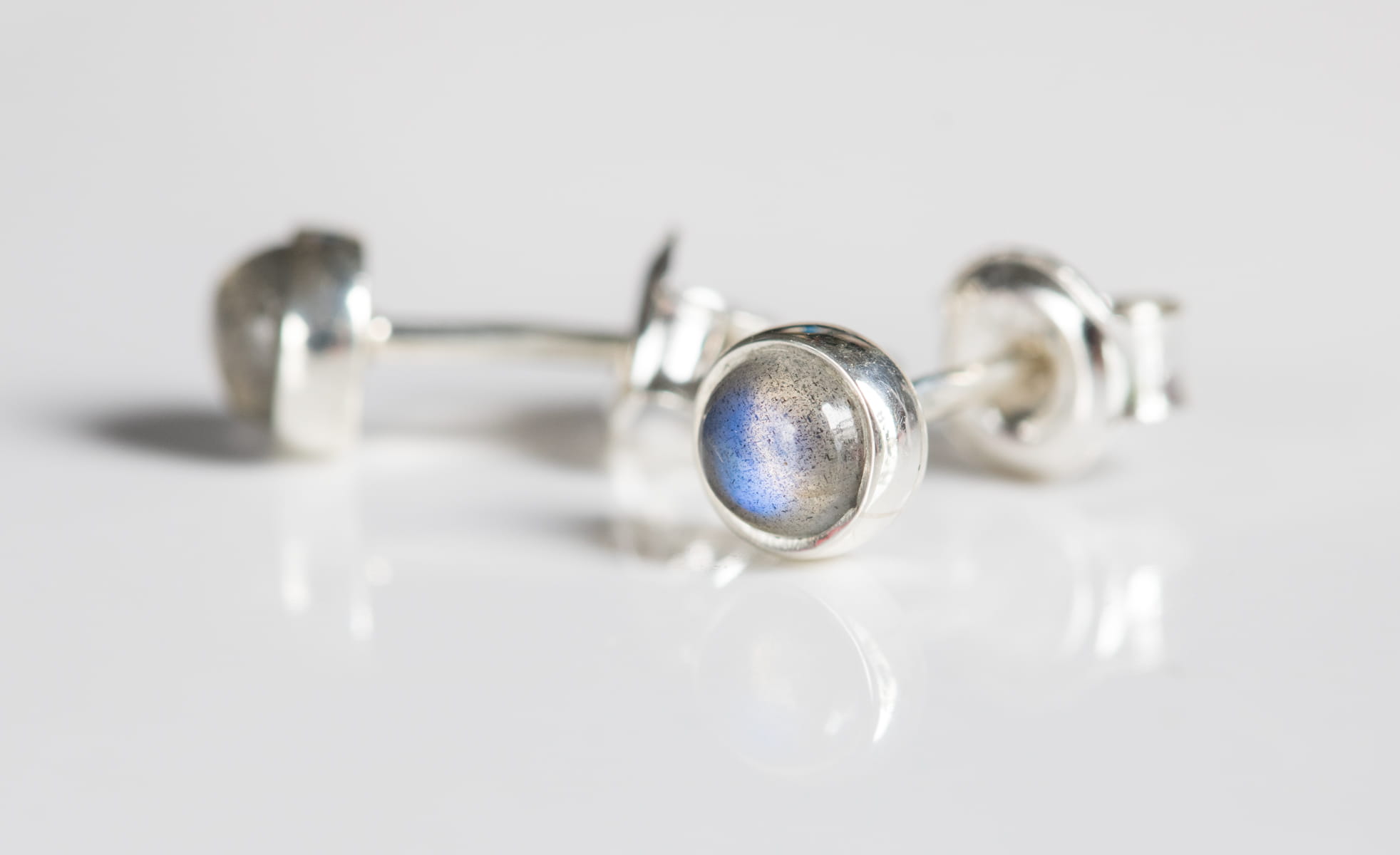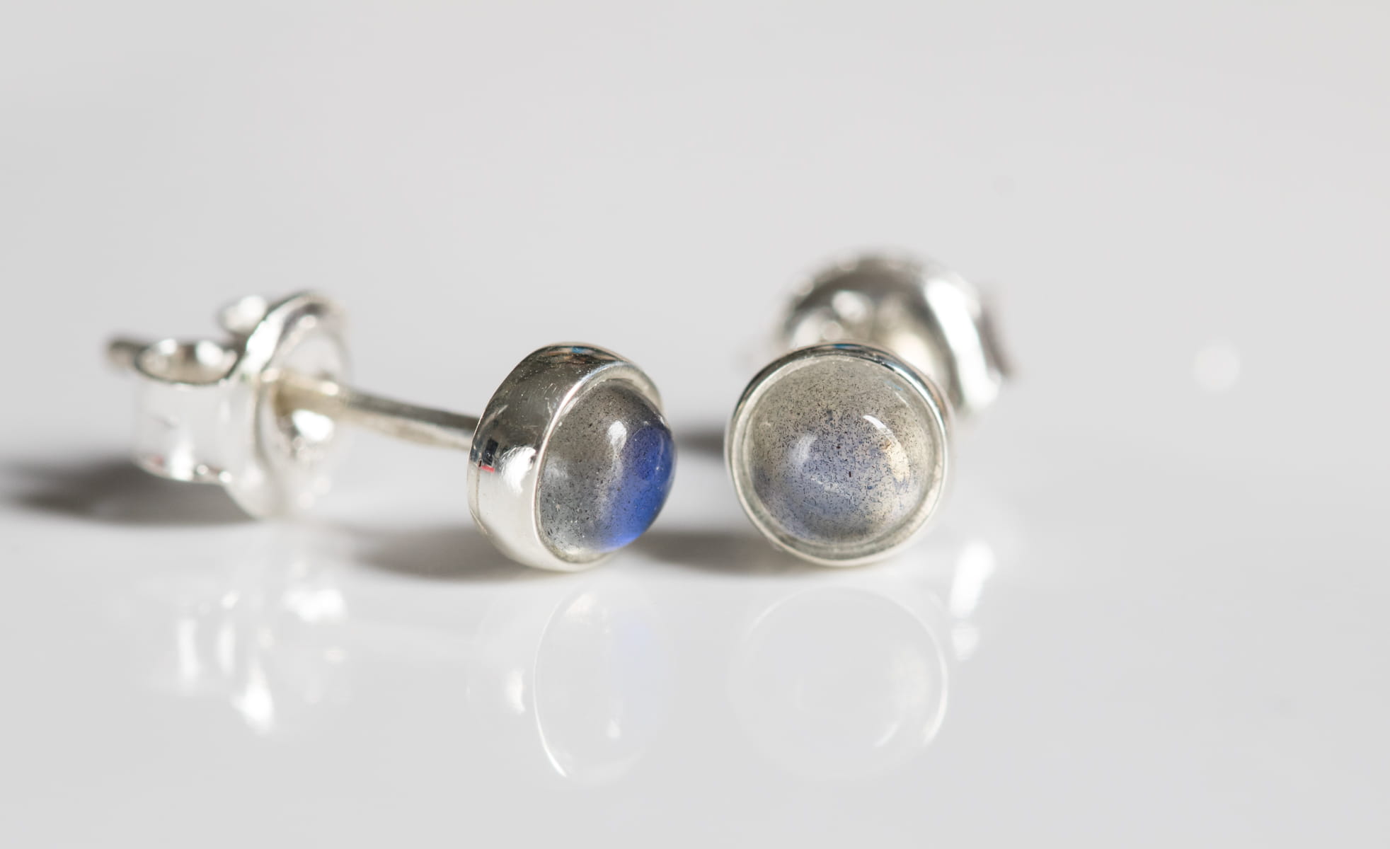 Sztyfty z okrągłym labradorytem 4mm w srebrnej oprawie p.925.
