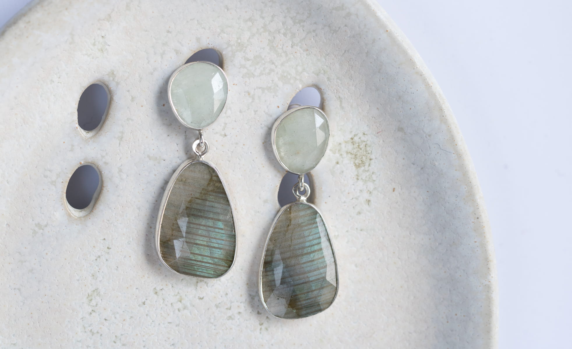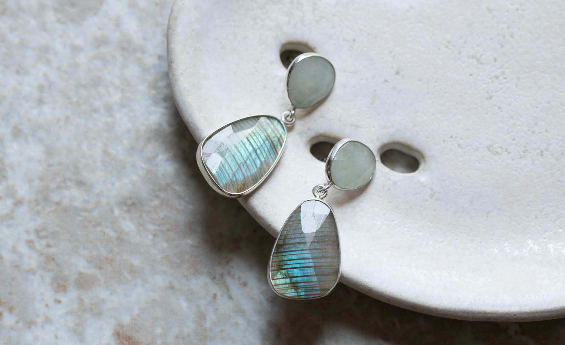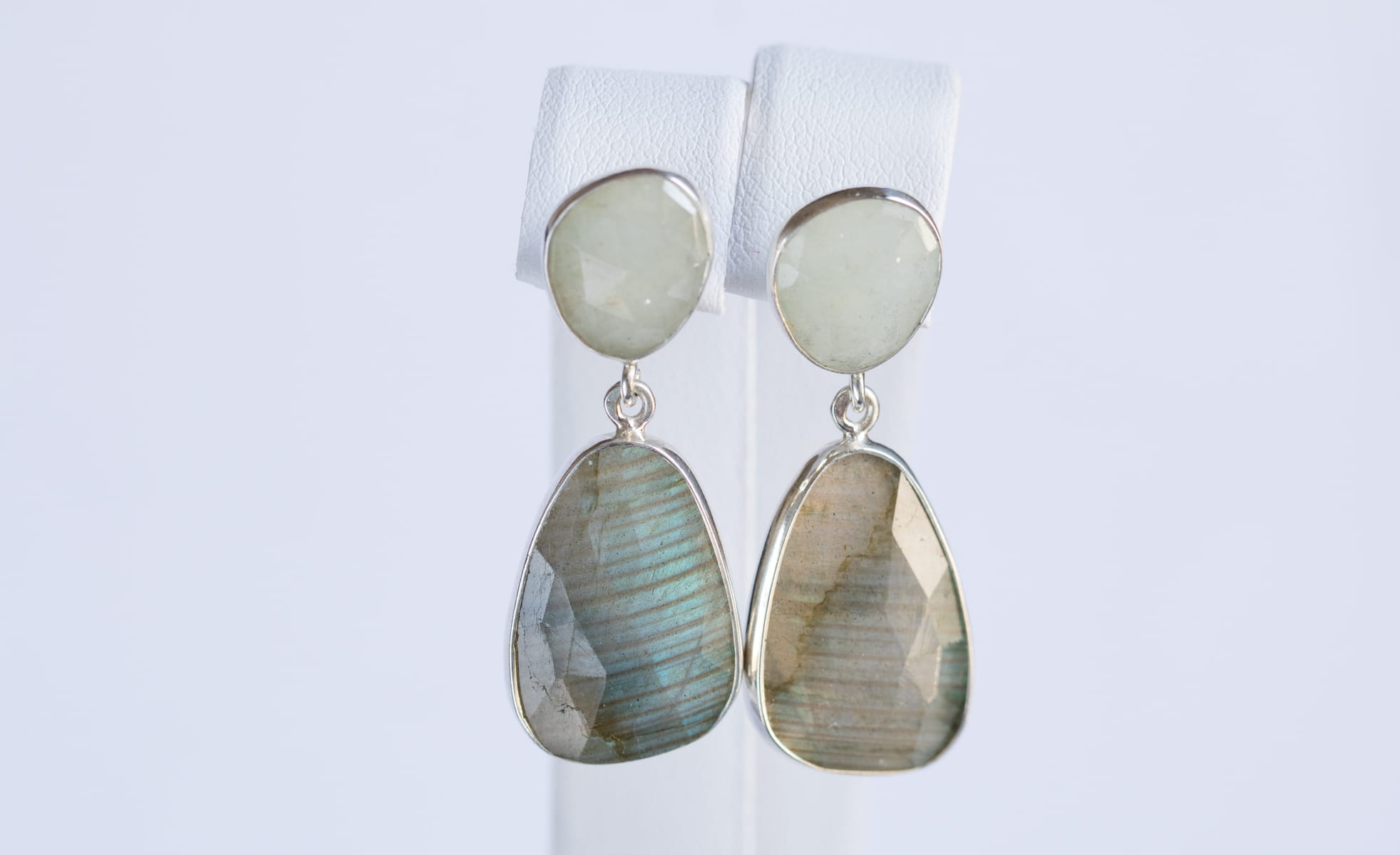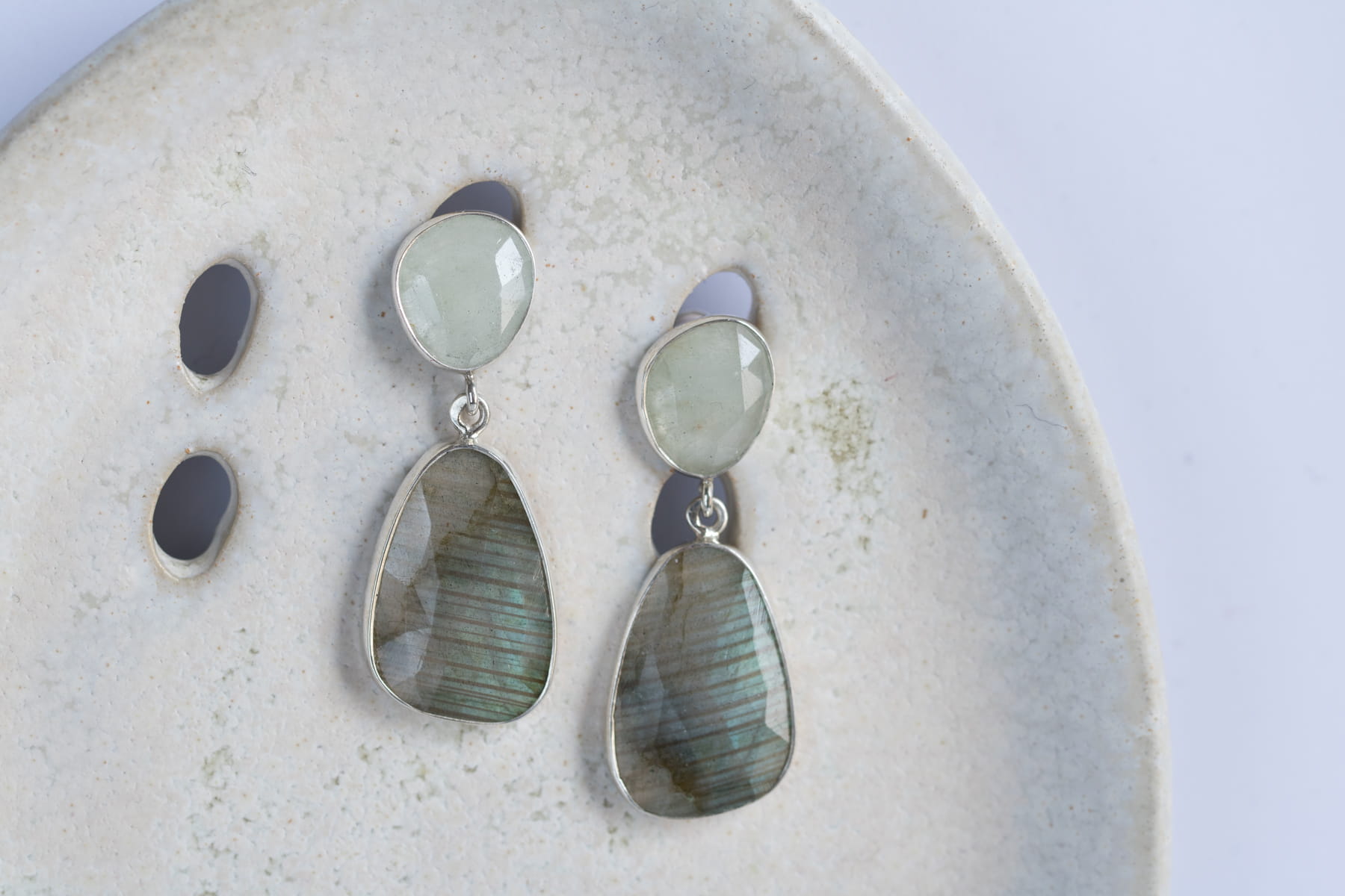 Kolczyki srebrne akwamaryny i labradoryty fasetowane K467