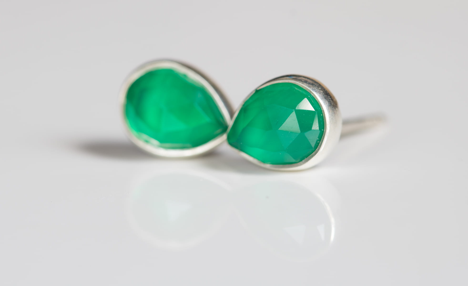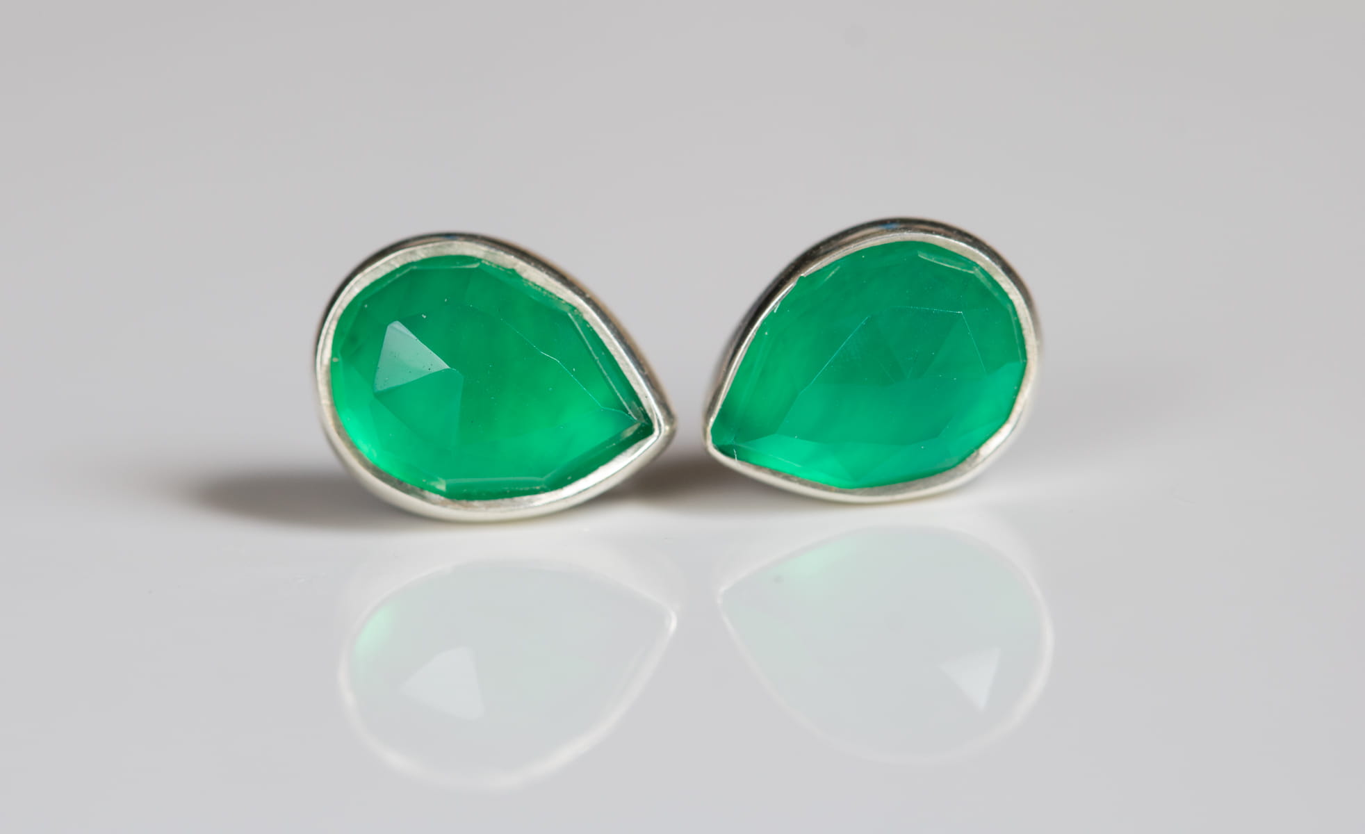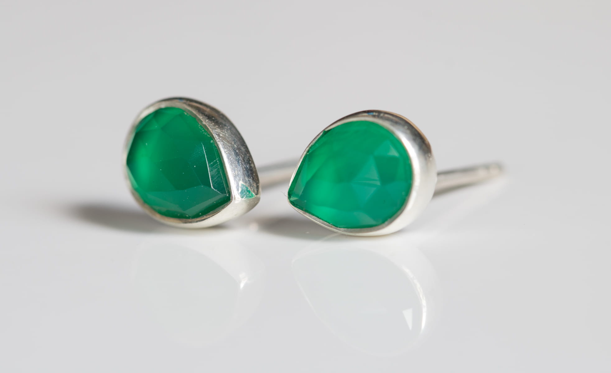 Sztyfty z zielonym fasetowanym agatem w kształcie łezki 6x8mm w srebrnej oprawie p.925.