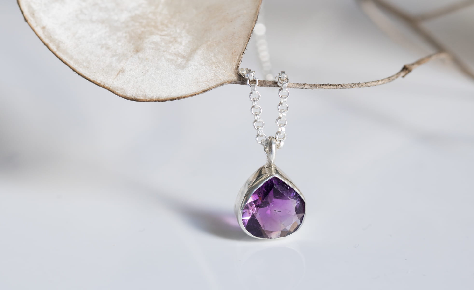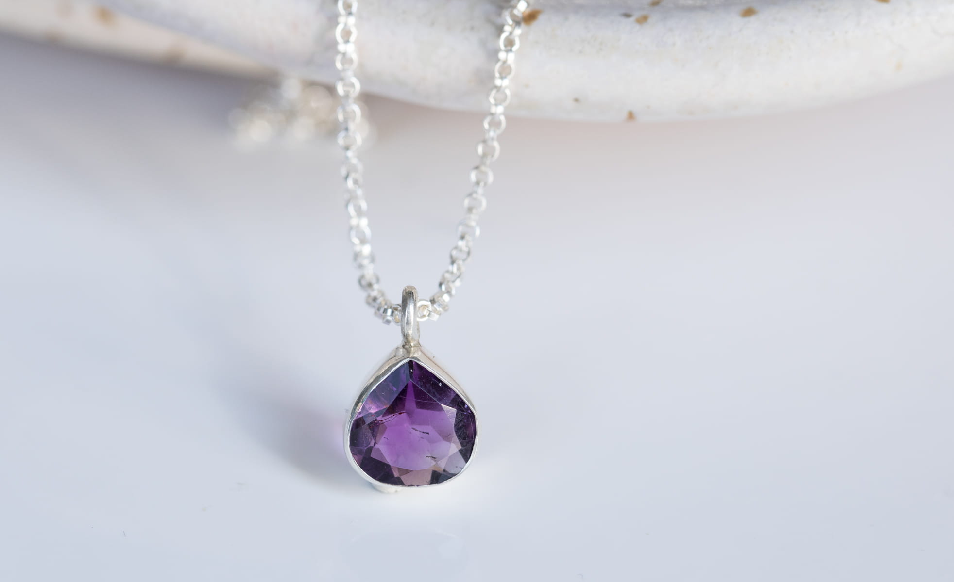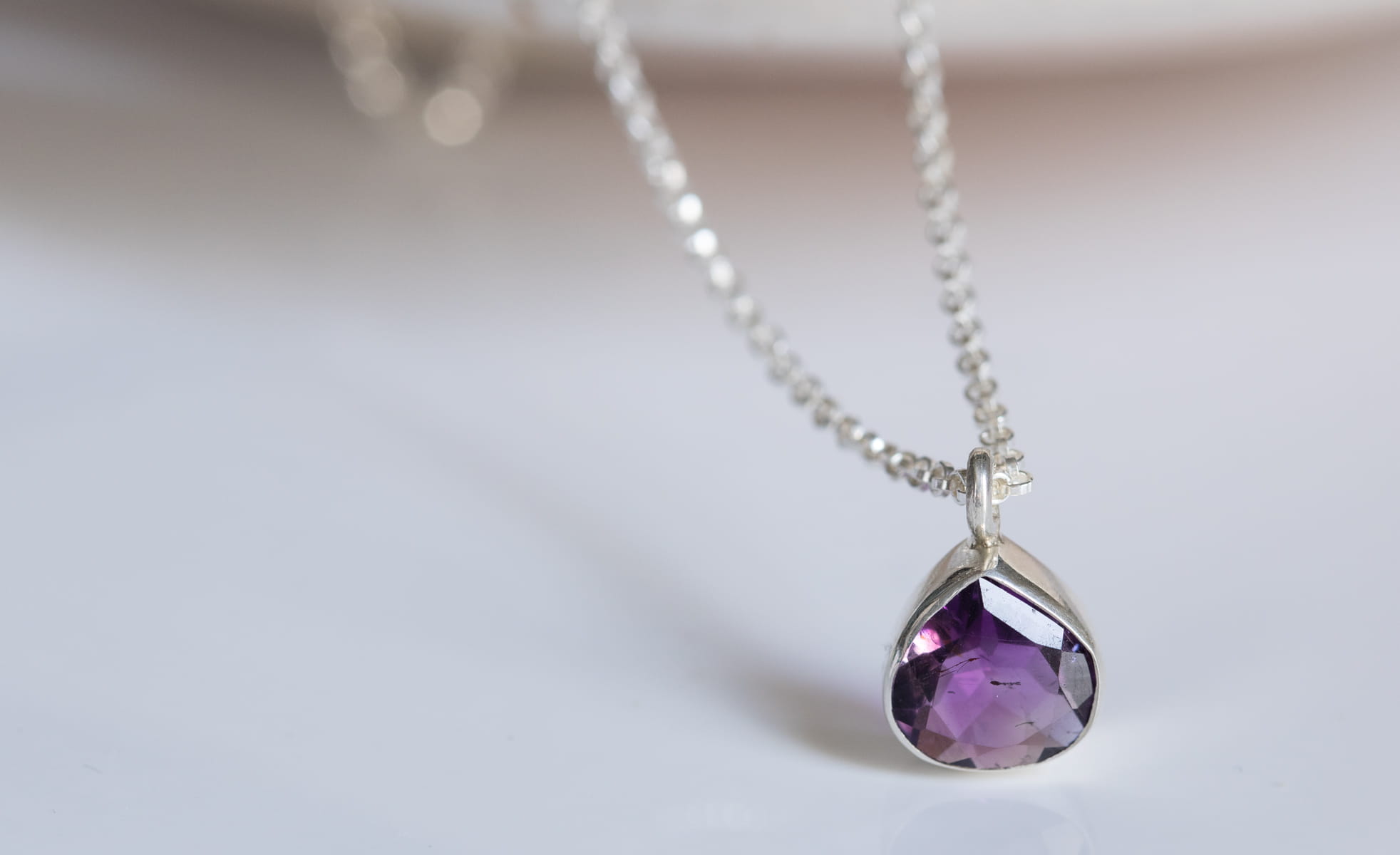 Naszyjnik srebrny z fioletowym ametystem w kształcie łezki N103