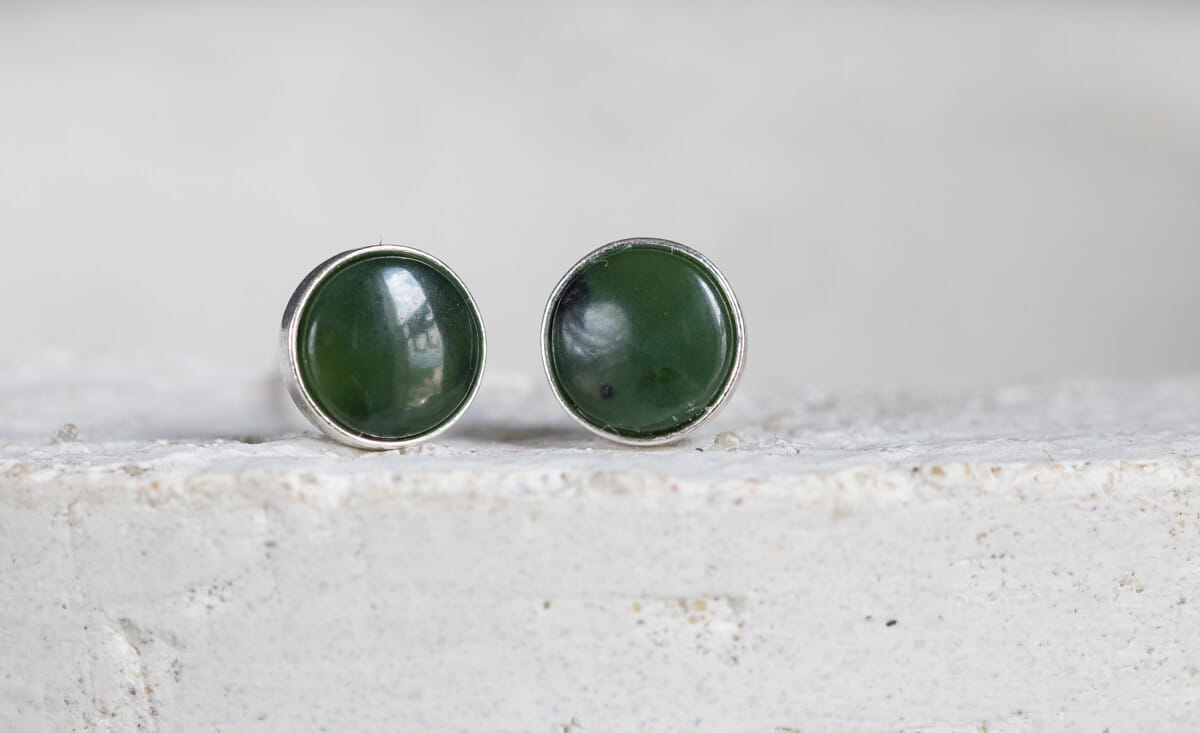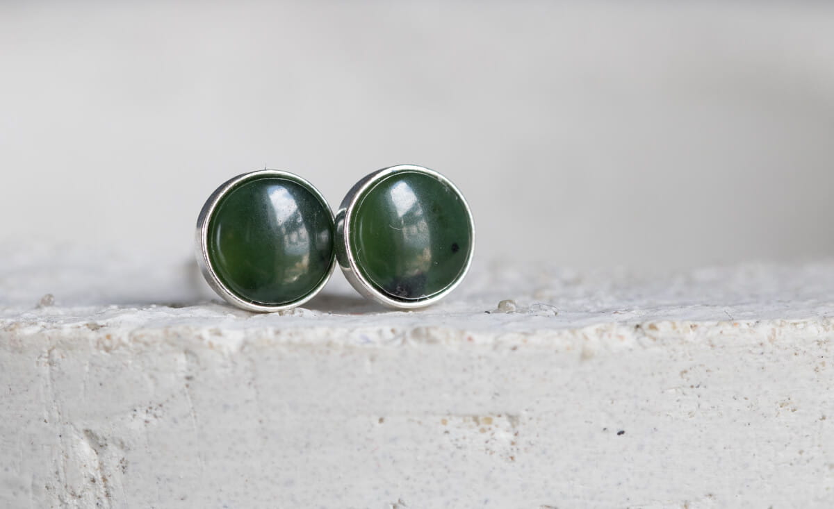 Kolczyki: srebro p.925, serpentynit (ciemny, zielony odcień) 6mm w srebrnej oprawie.
