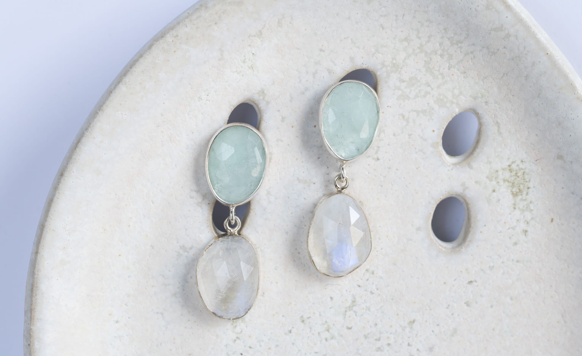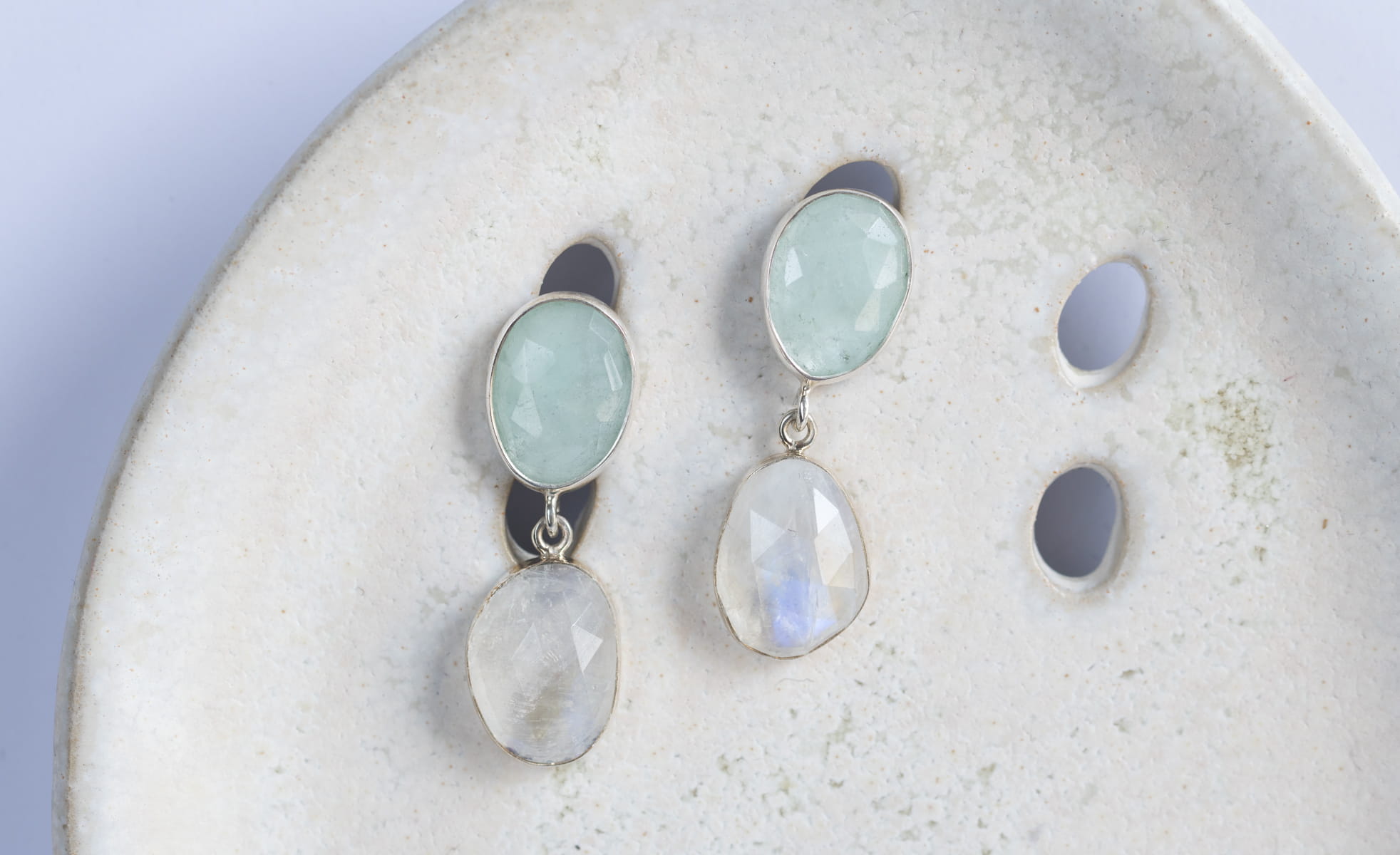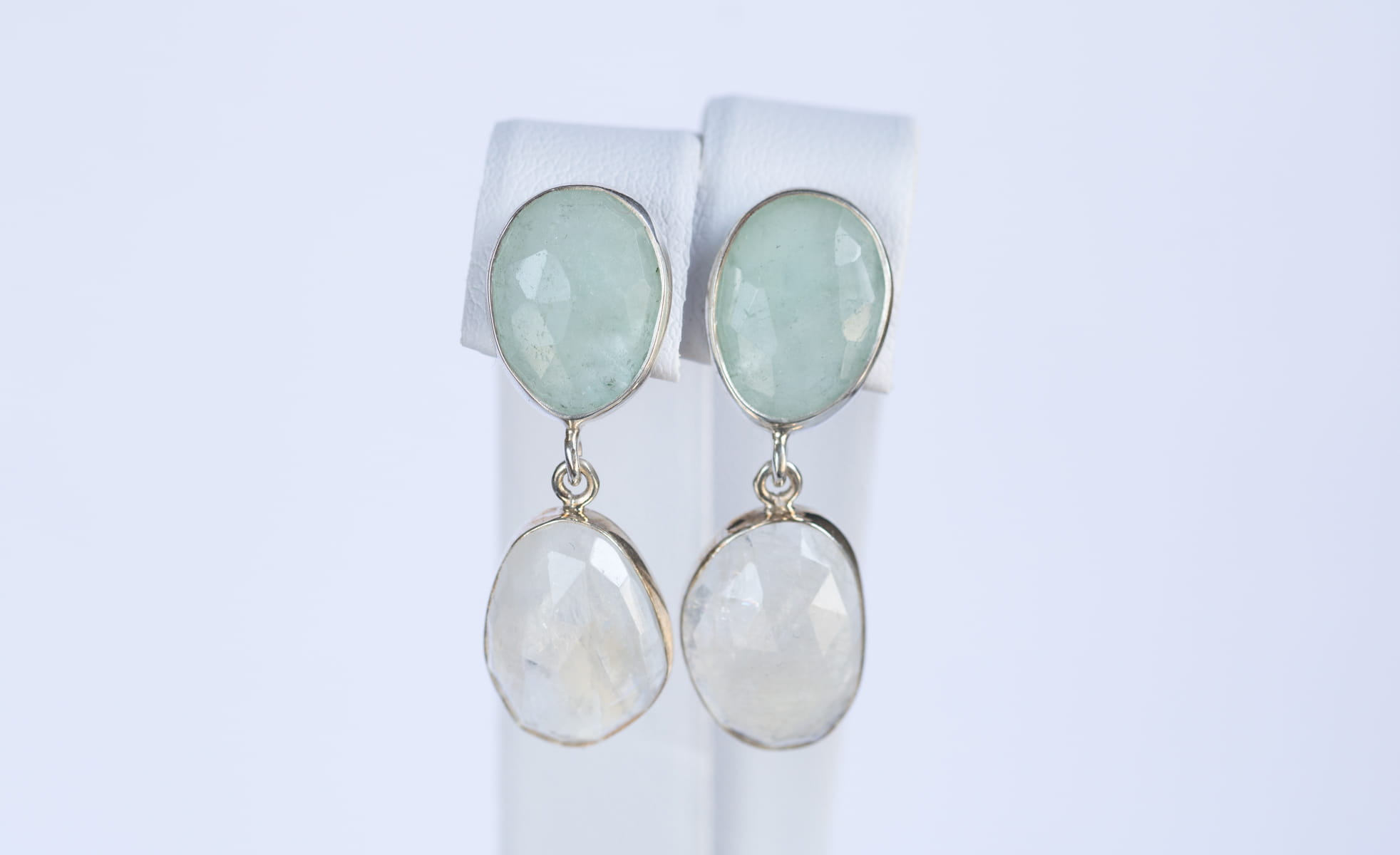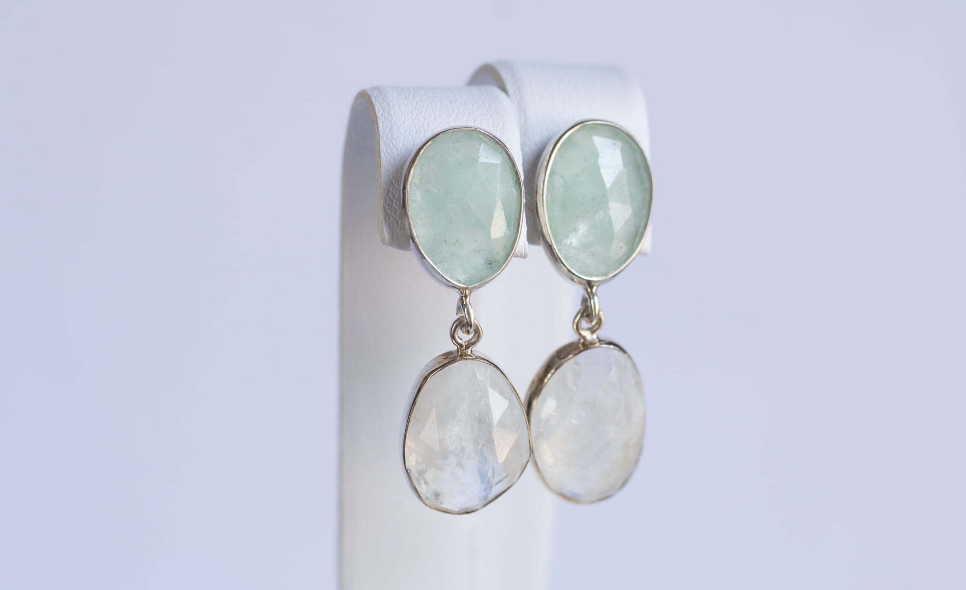 Srebrne kolczyki z akwamarynem i kamieniem księżycowym K468