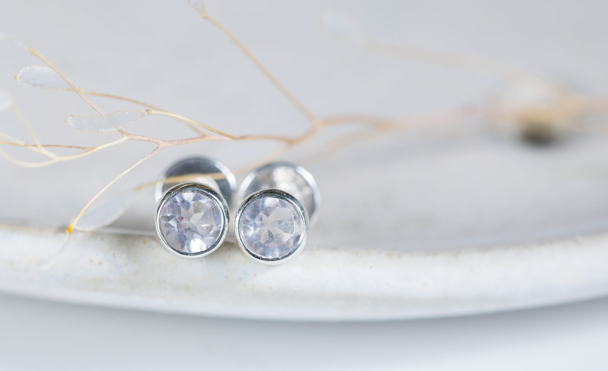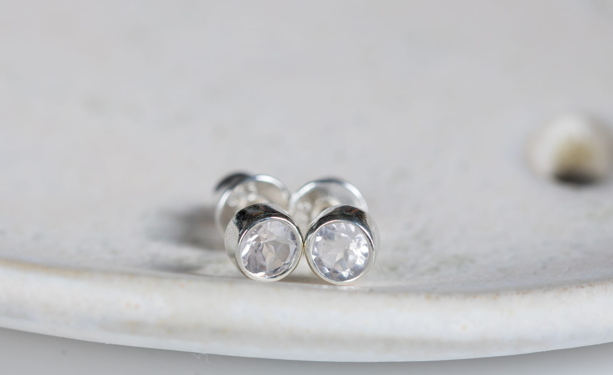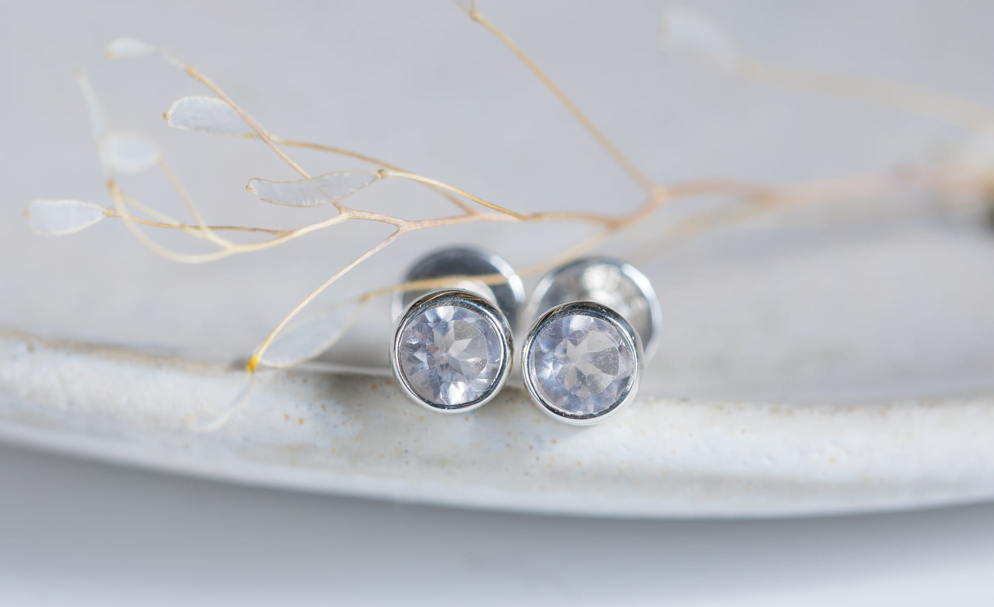 Sztyfty z okrągłym kwarcem różowym w jasnym odcieniu 4mm w srebrnej oprawie p.925.