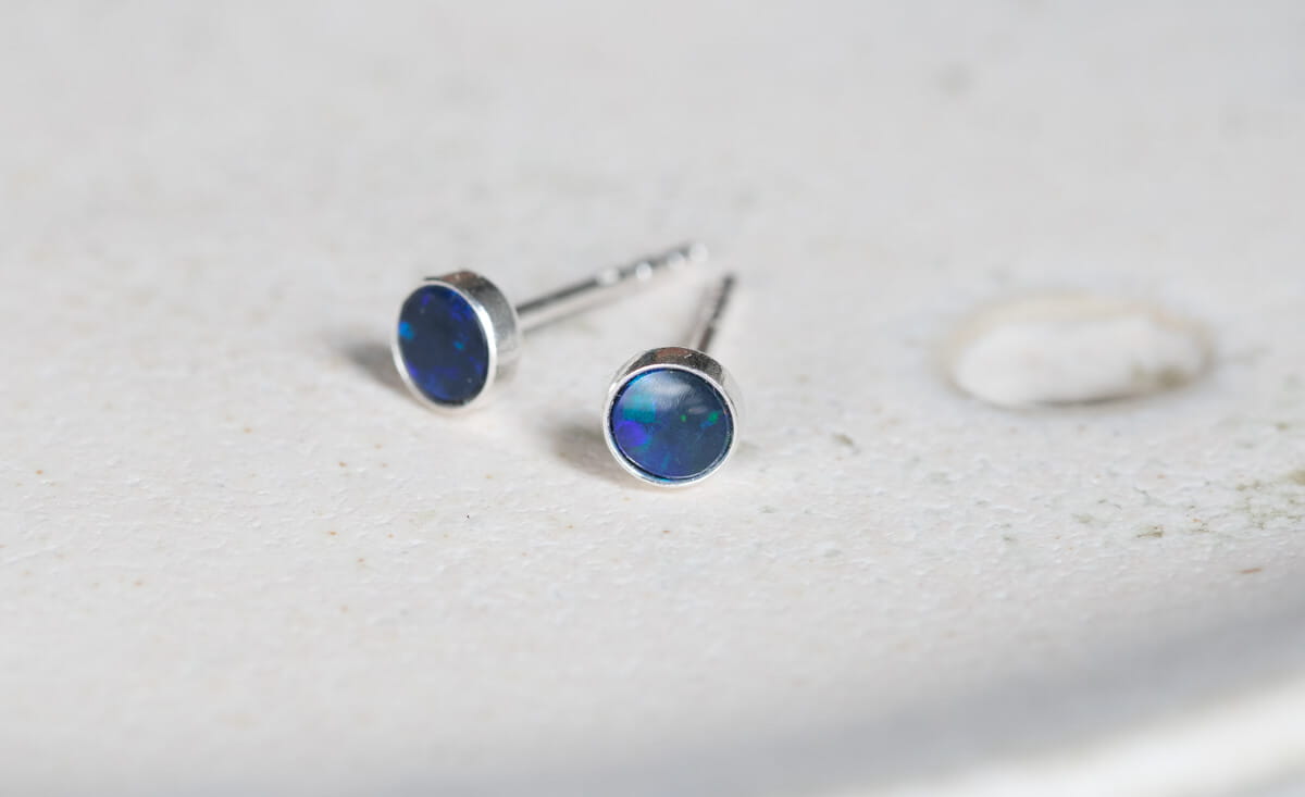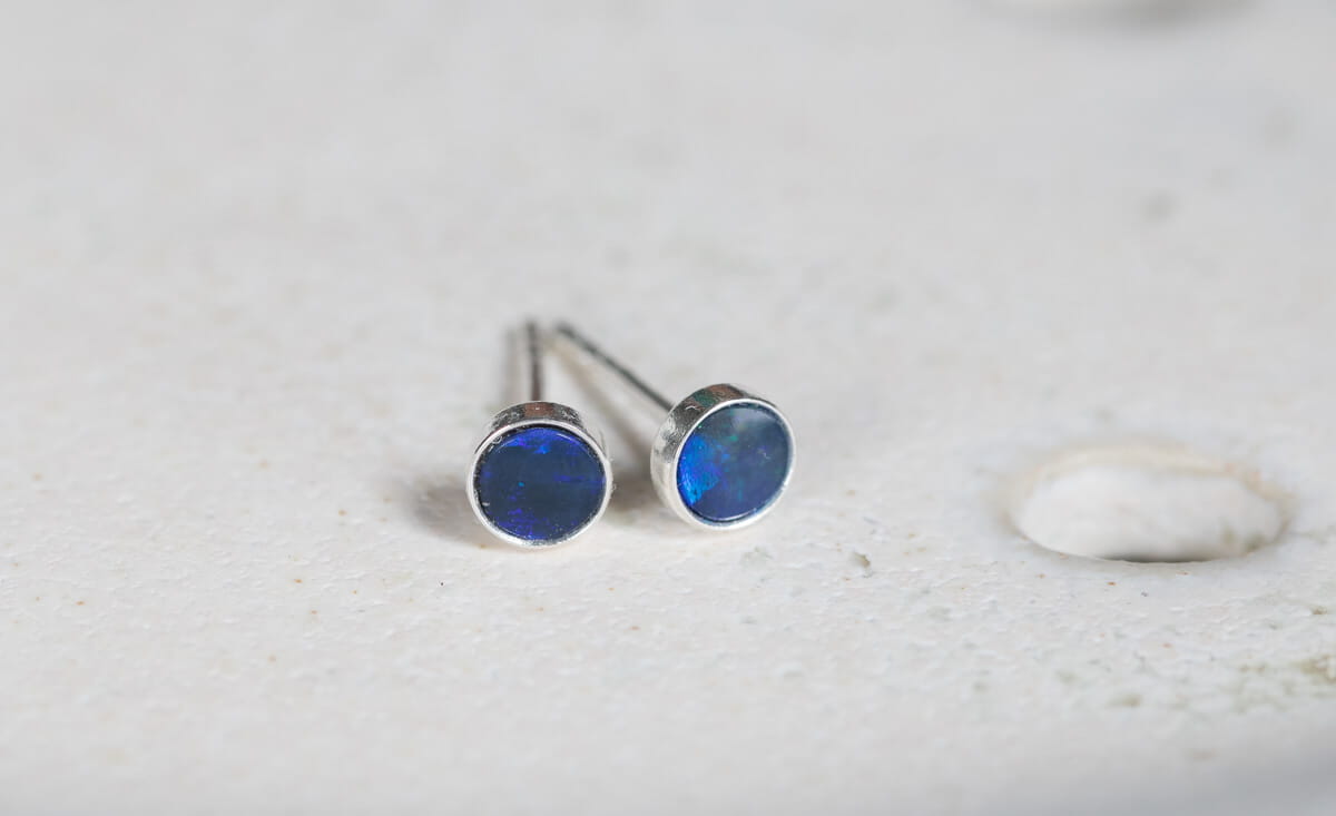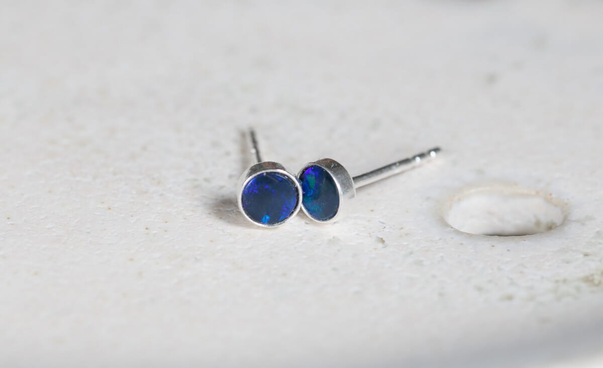 Kolczyki: srebro p.925, opal w odcieniach niebieskiego i granatowego 4mm w srebrnej oprawie.