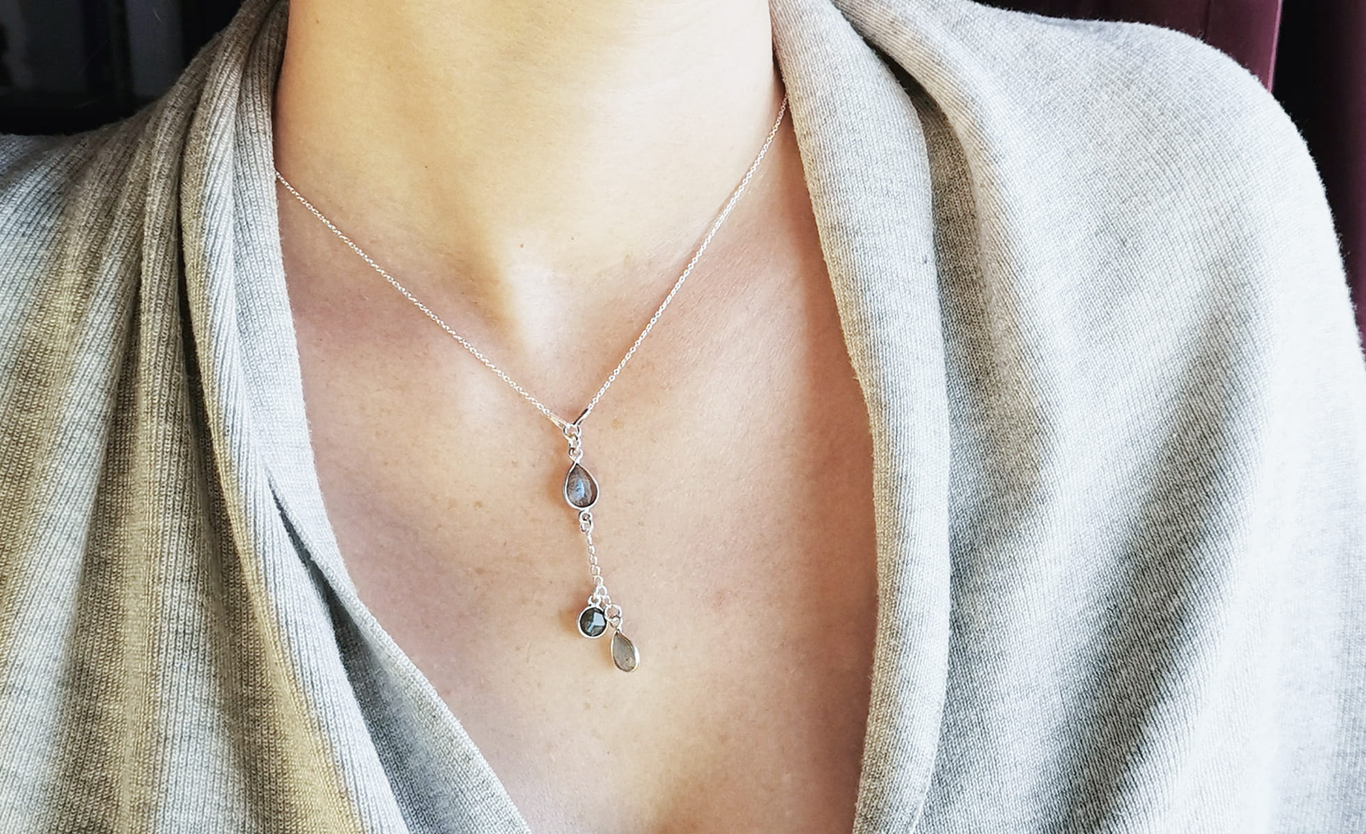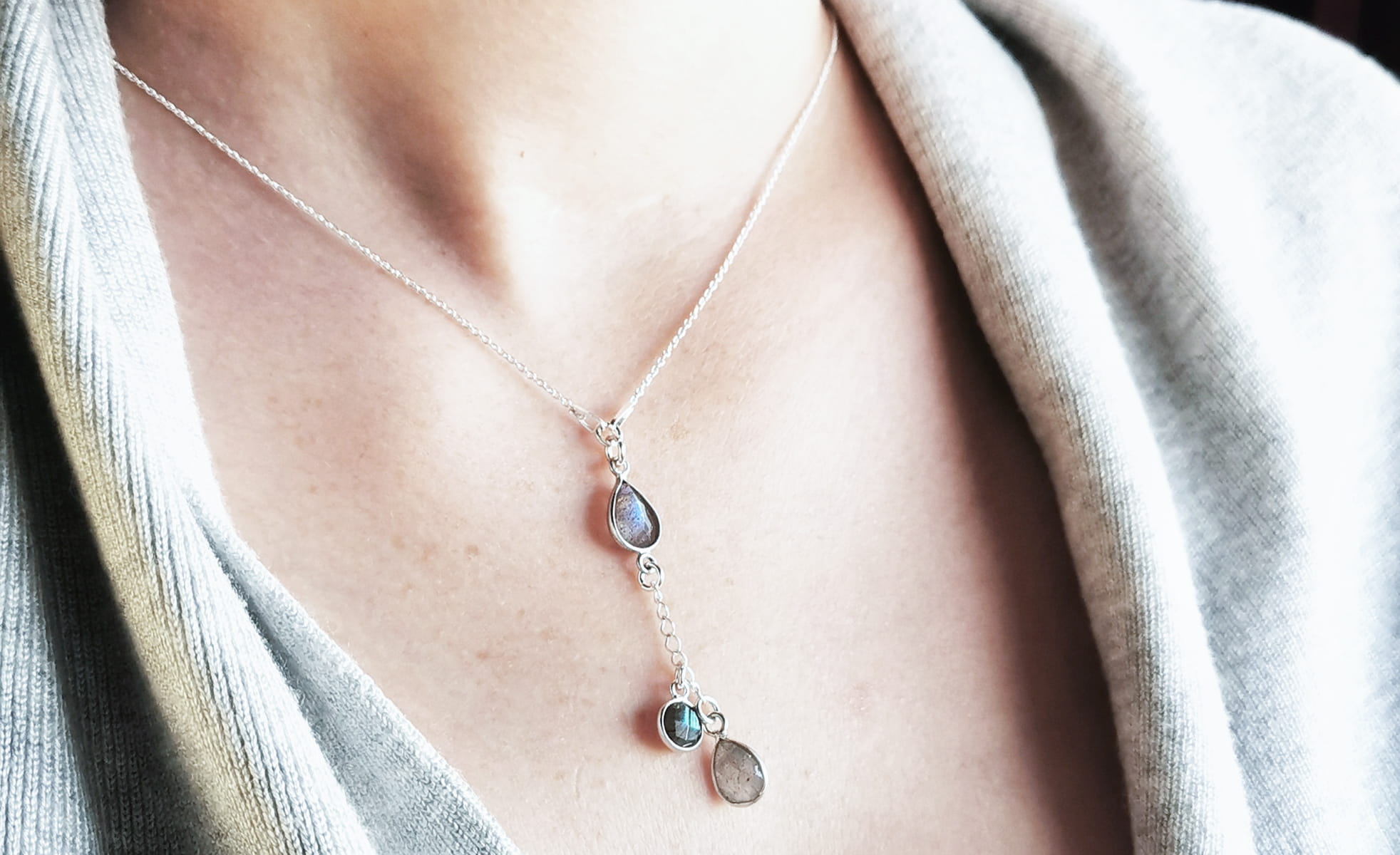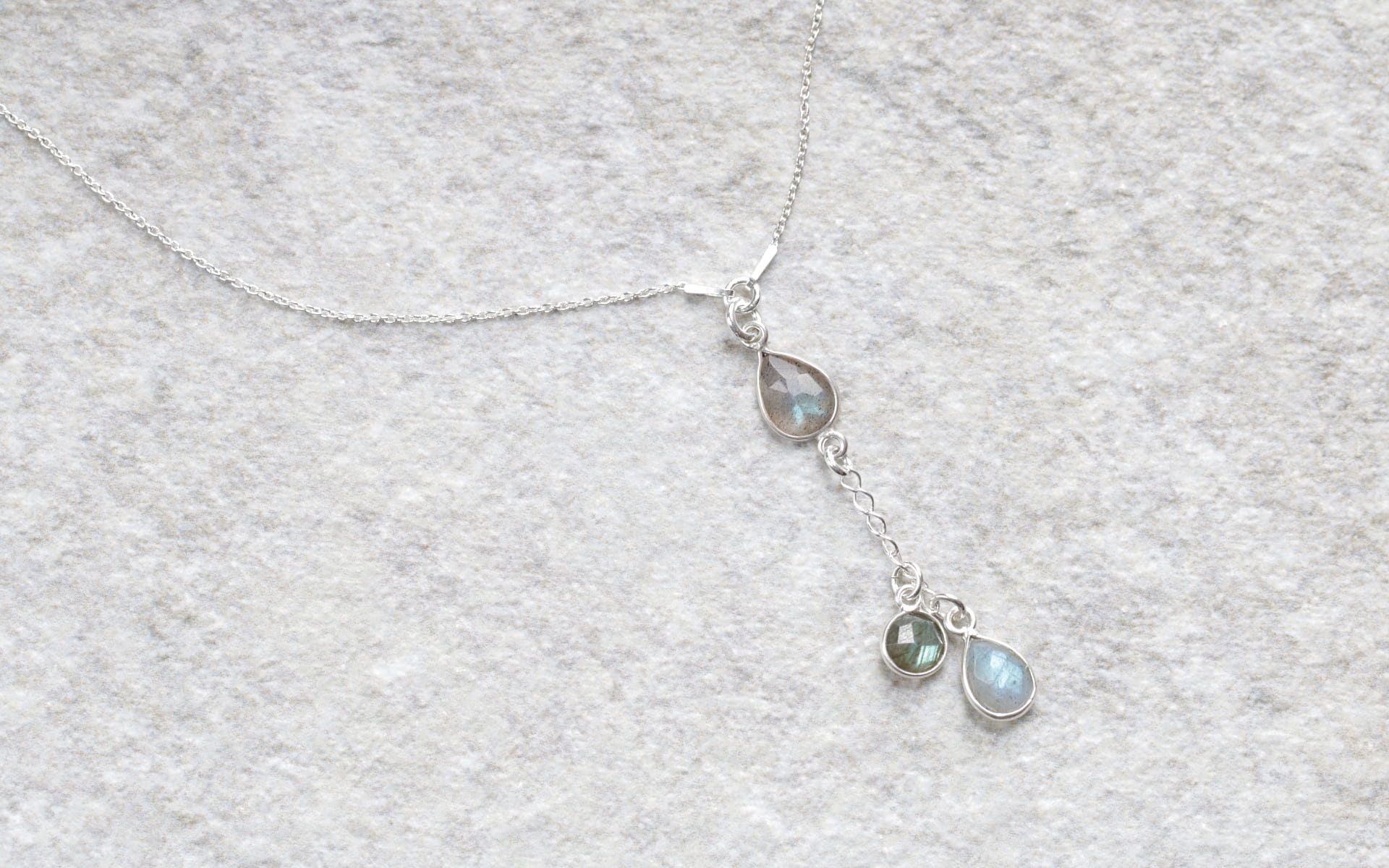Naszyjnik: srebro p.925, 3x labradoryt (całkowita długość zawieszki: 54mm)
