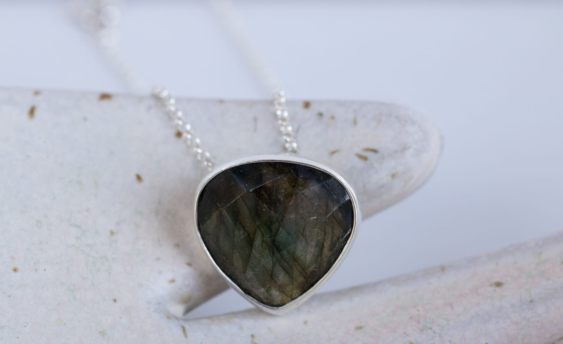 Wyjątkowy srebrny naszyjnik z labradorytem w kształcie serca N78