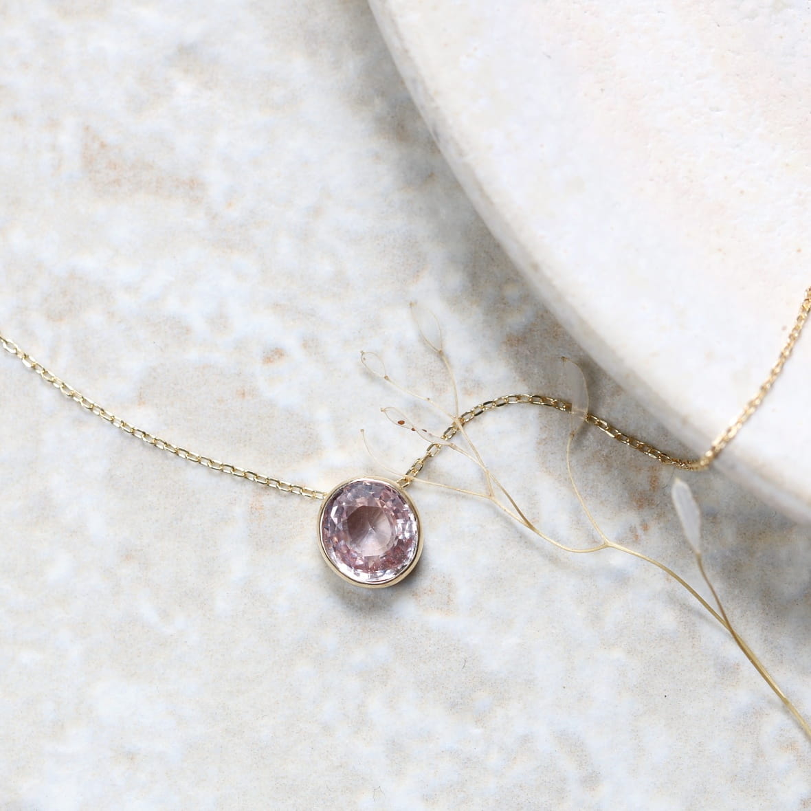 Złoty naszyjnik z różowym szafirem N121